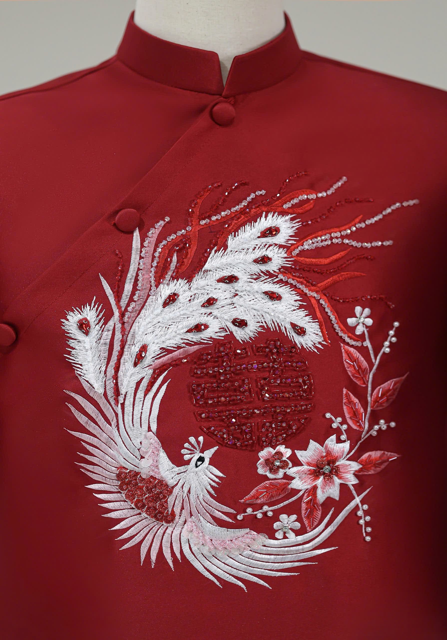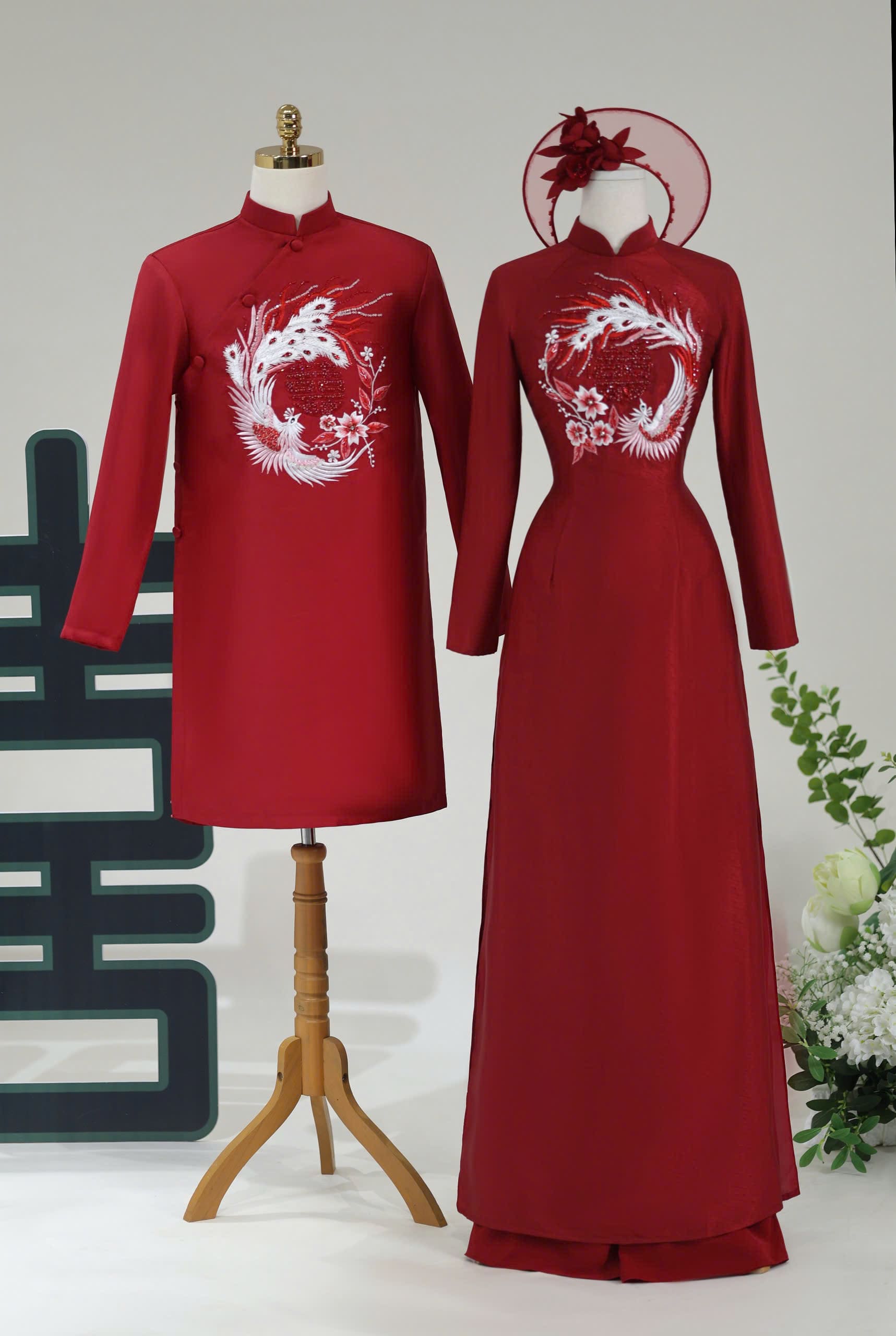 ÁO DÀI CƯỚI CẶP ĐÔI HỌA TIẾT CHIM PHỤNG