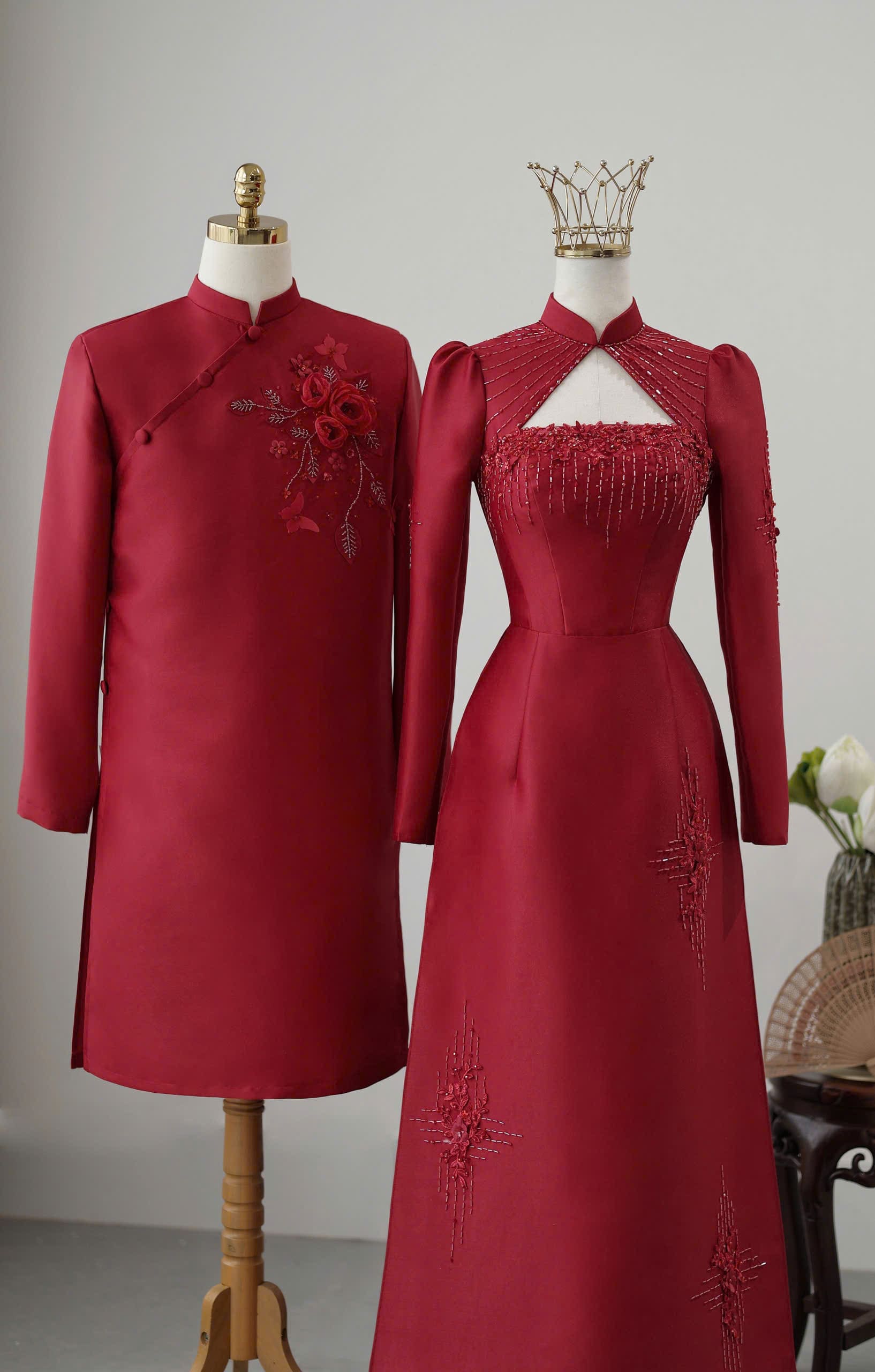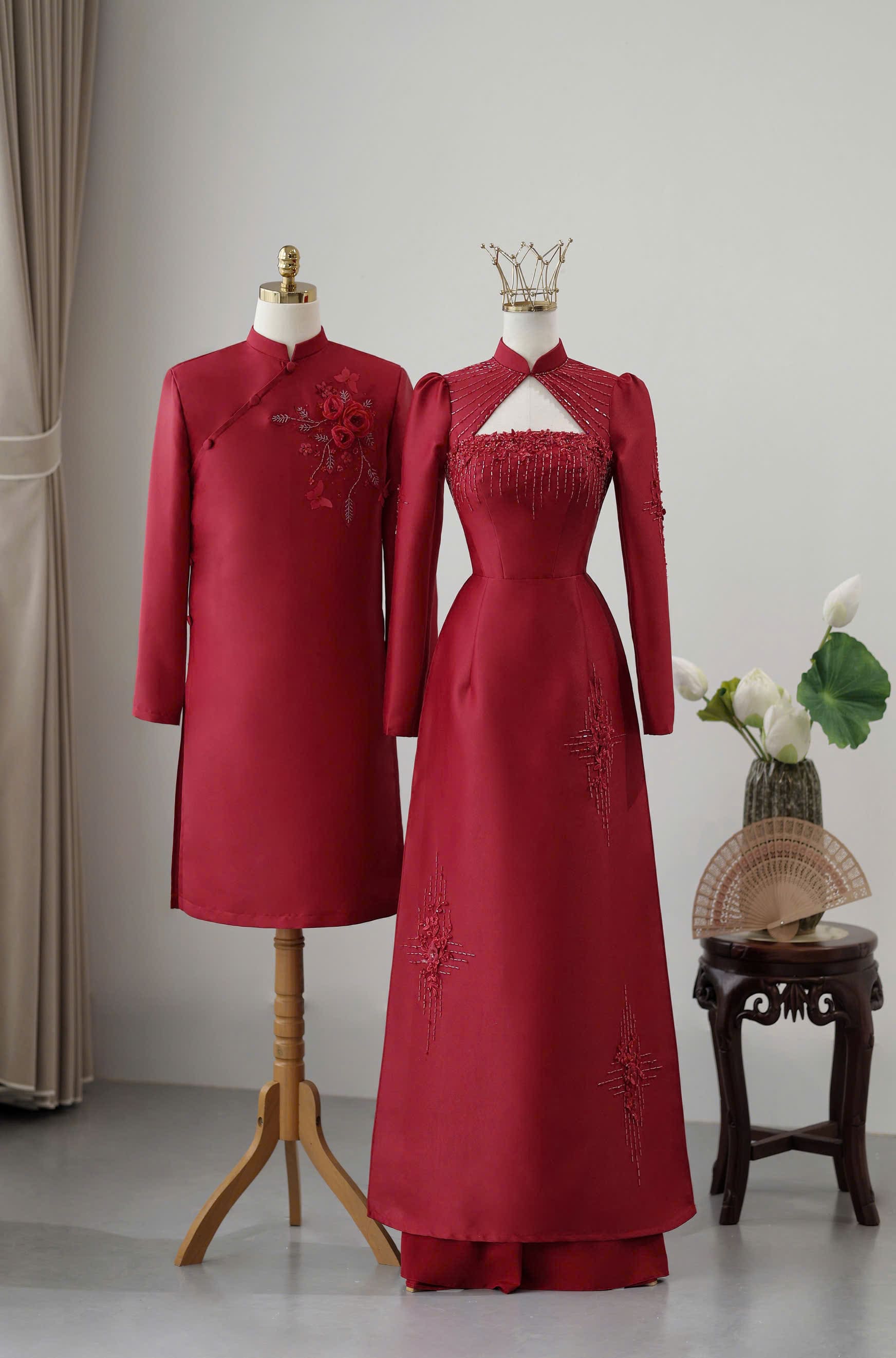 ÁO DÀI CƯỚI CẶP ĐÔI HỌA TIẾT ĐÍNH CƯỜM