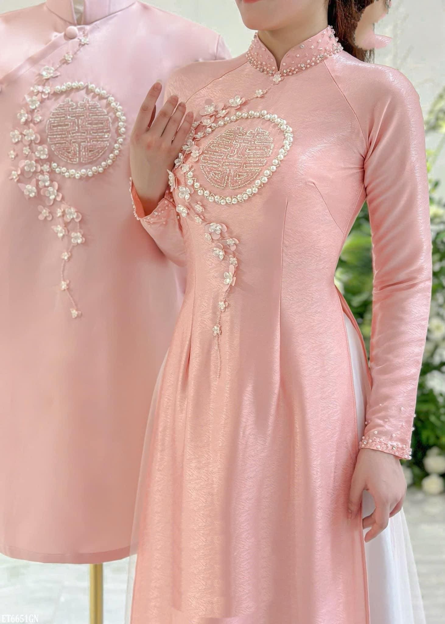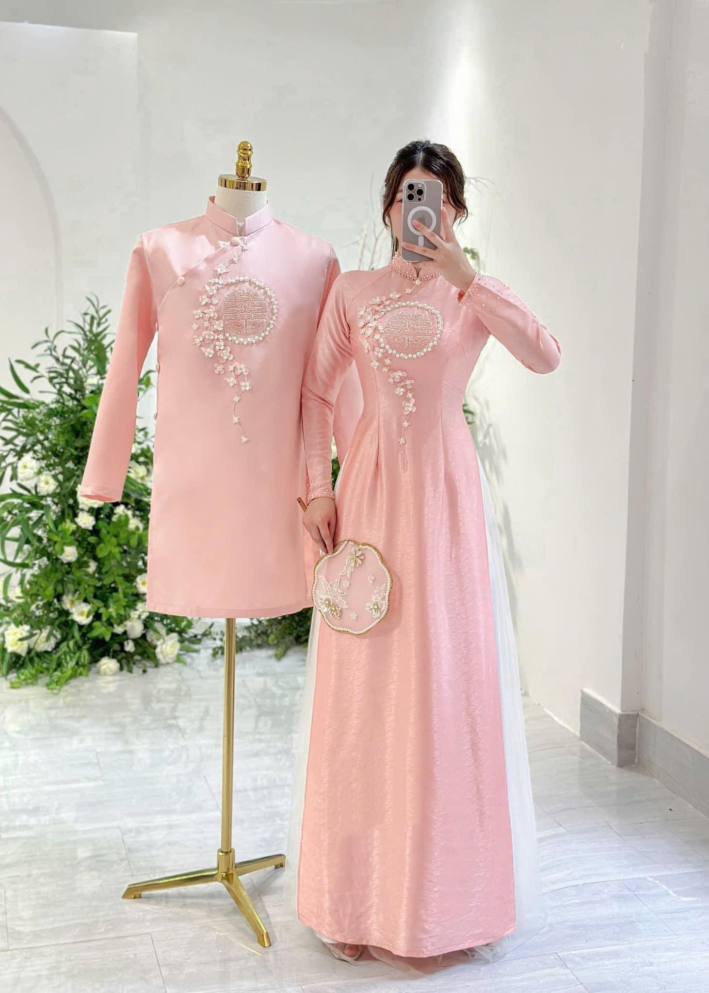 ÁO DÀI CƯỚI CẶP ĐÔI KẾT HOA DUYÊN DÁNG