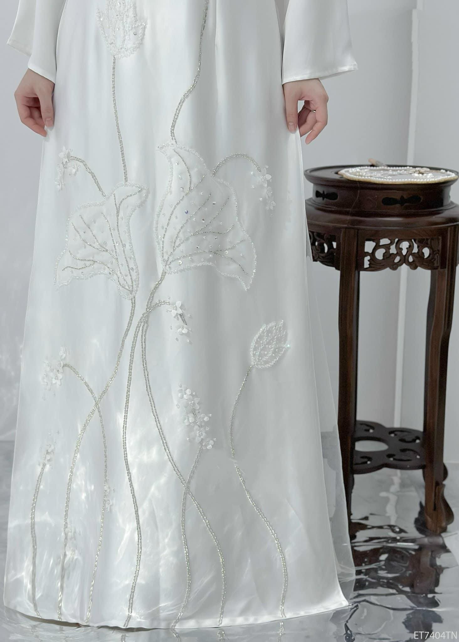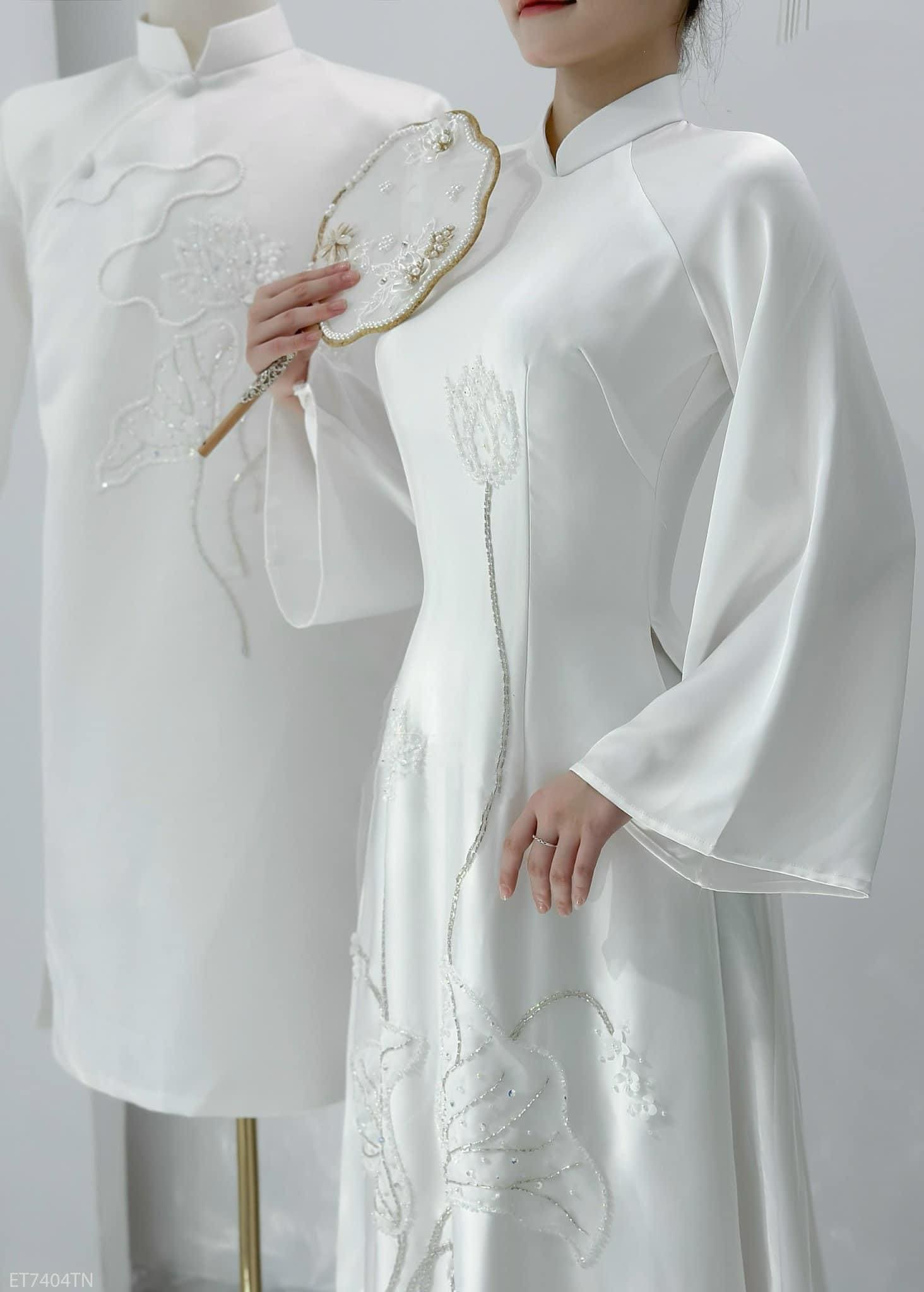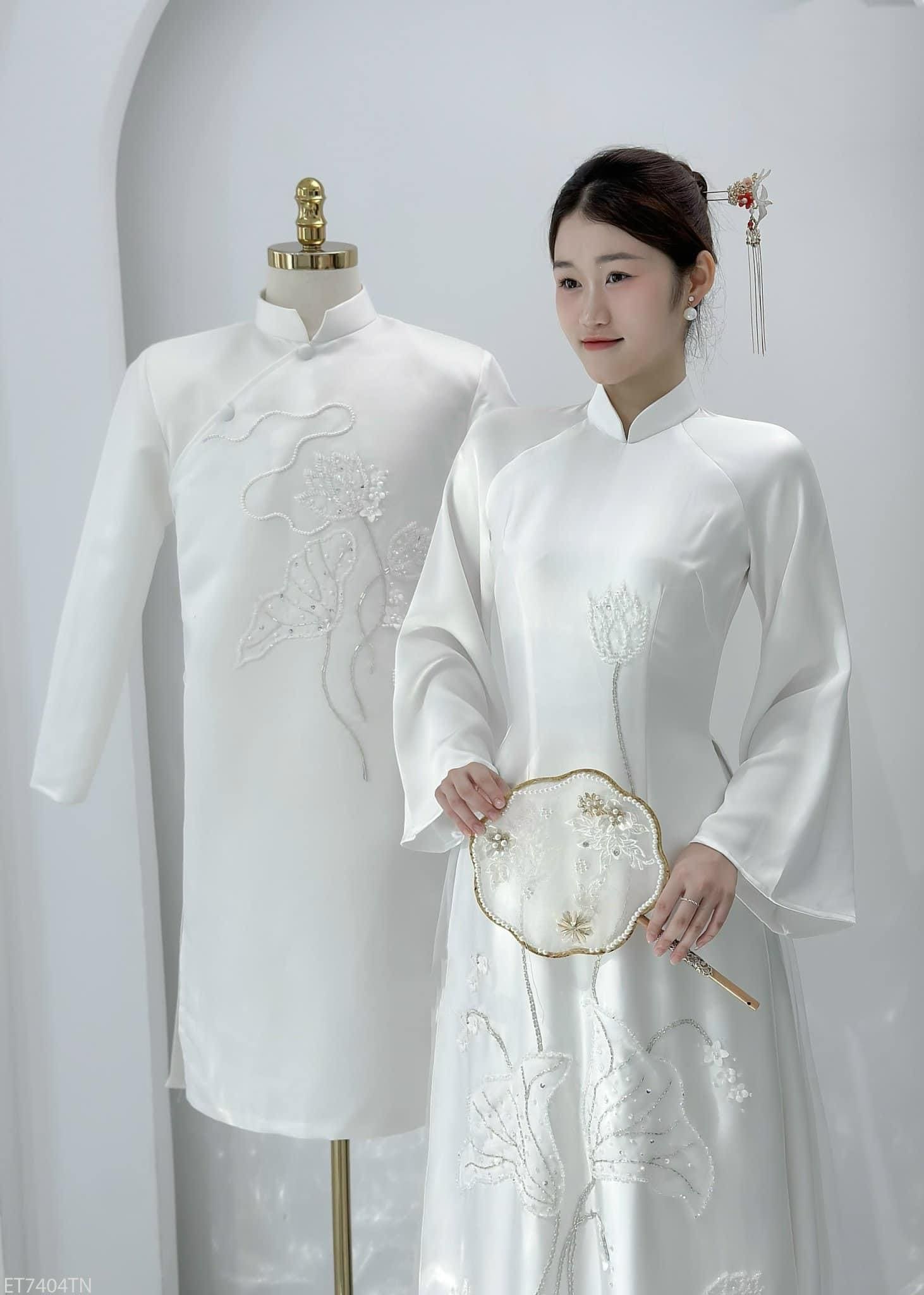 ÁO DÀI CƯỚI CẶP ĐÔI THÊU KẾT HOA SEN