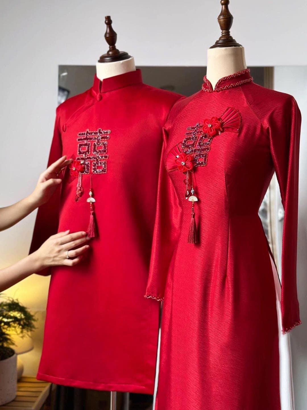 ÁO DÀI CƯỚI CẶP ĐÔI THÊU KẾT TINH XẢO