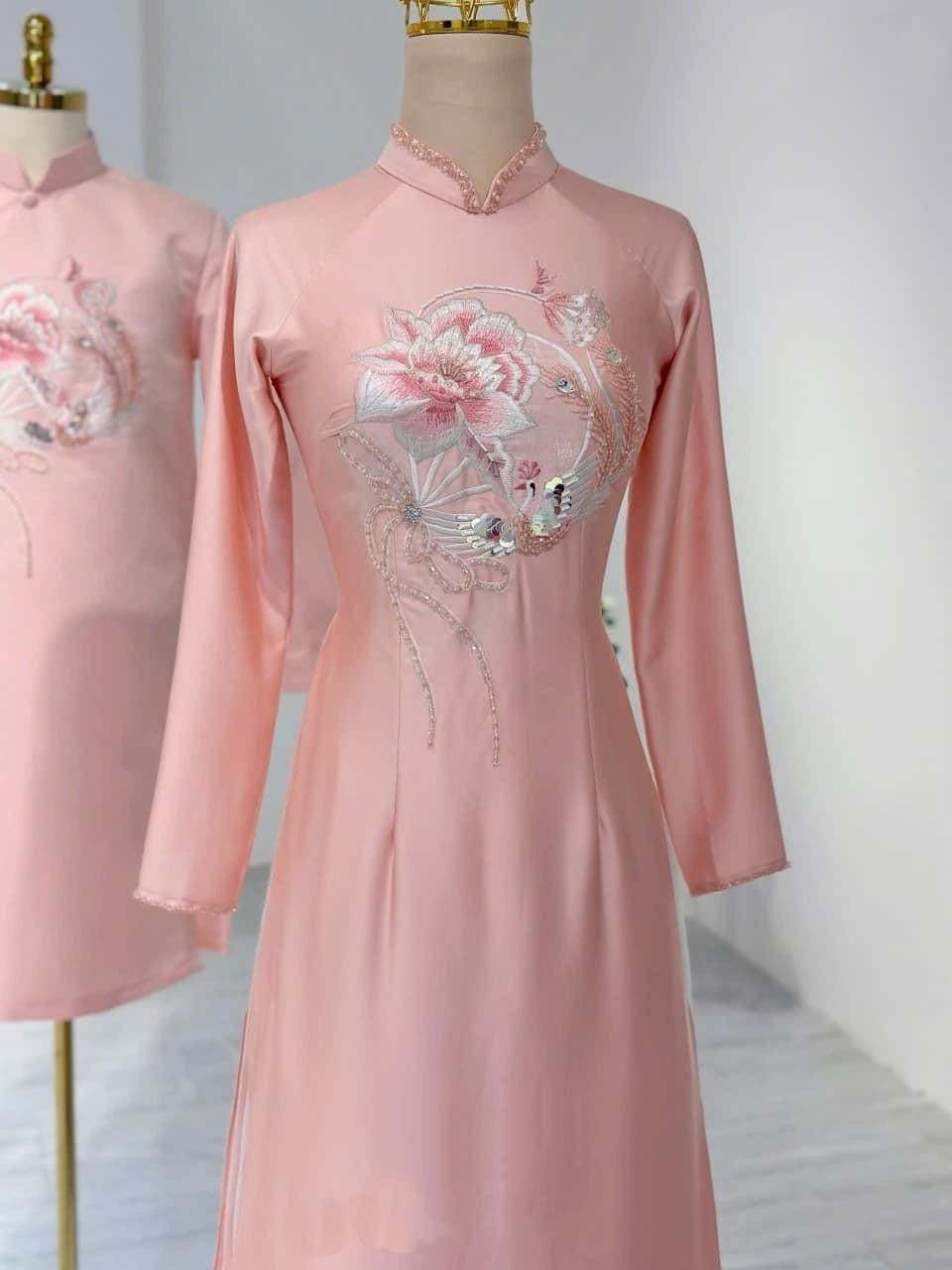 ÁO DÀI CƯỚI THÊU HOA ĐẸP