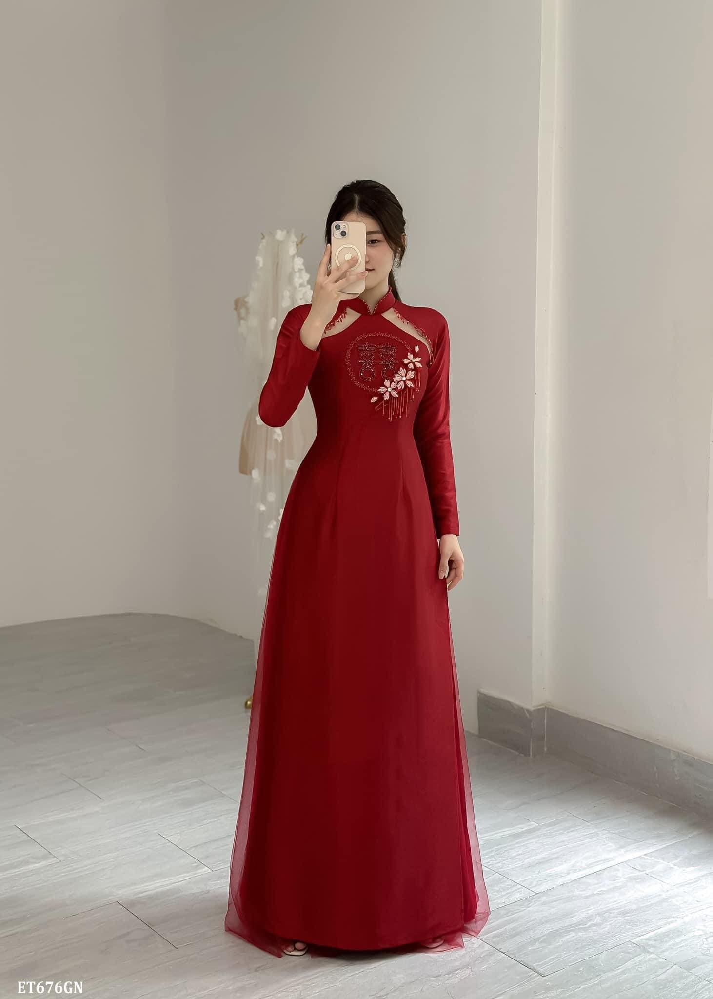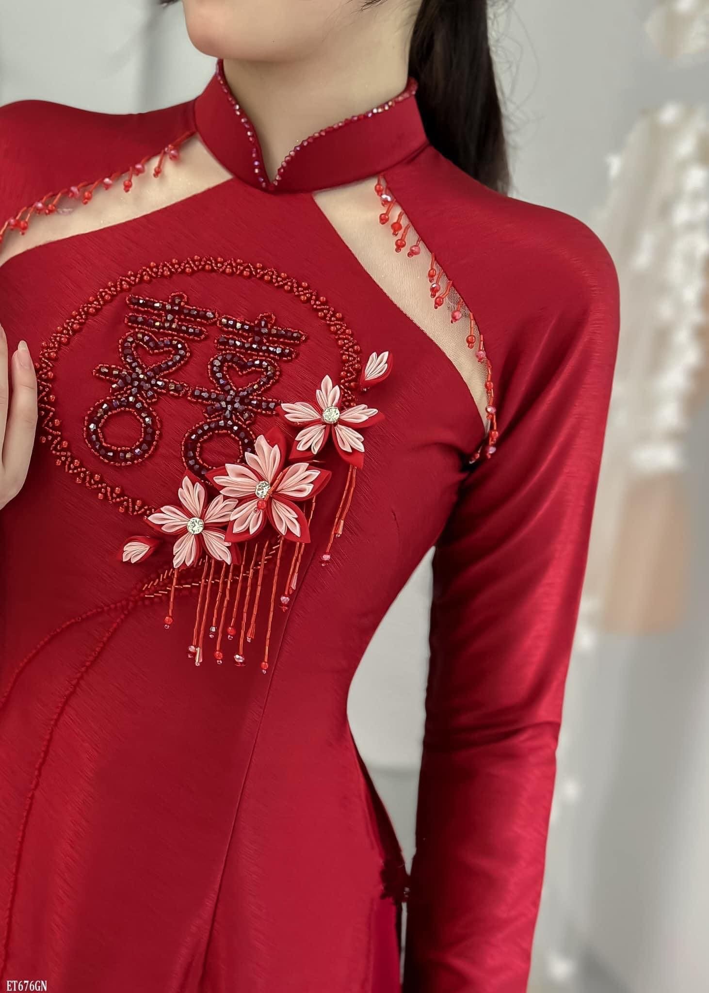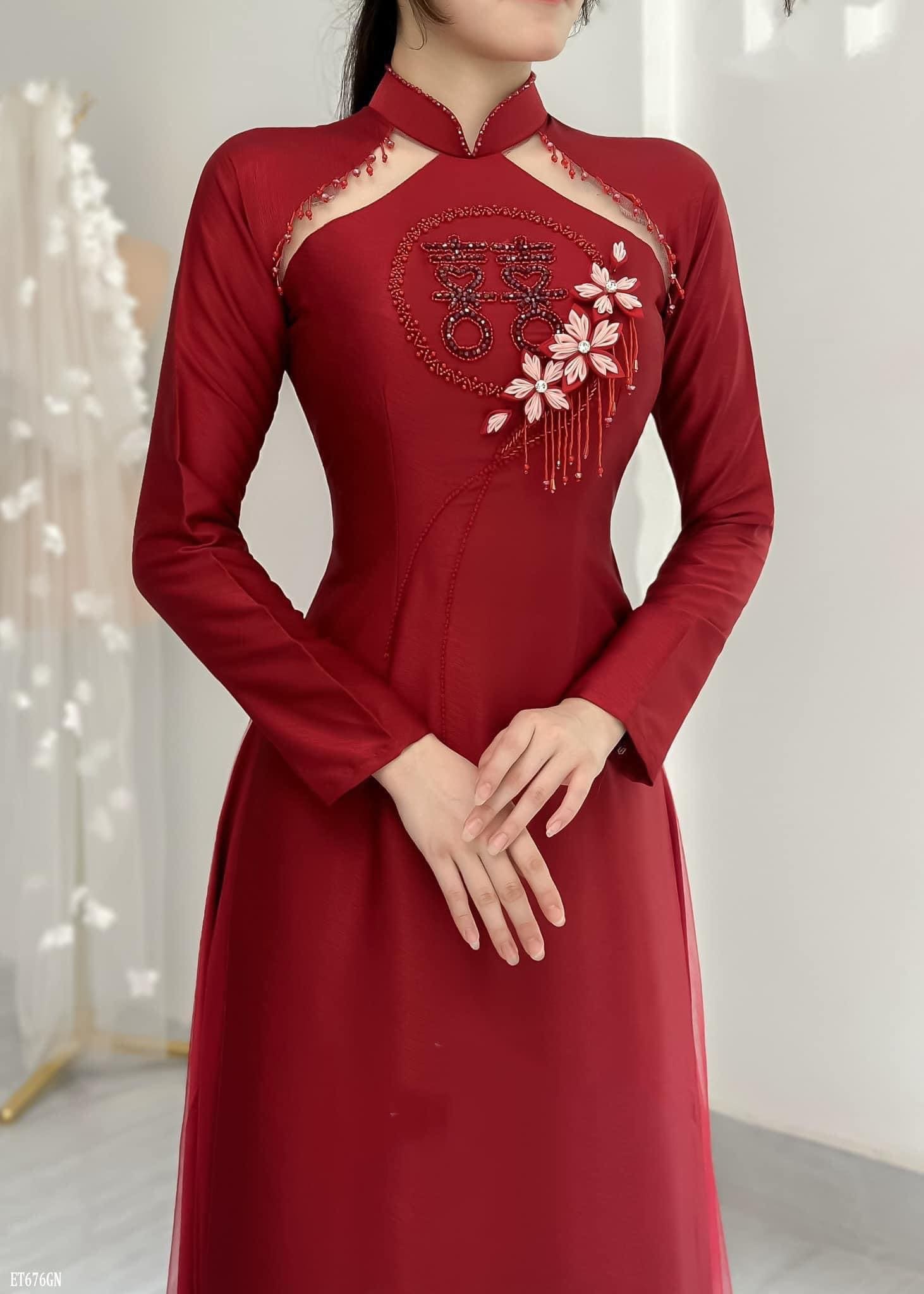ÁO DÀI CƯỚI CÔ DÂU THÊU KẾT HIỆN ĐẠI