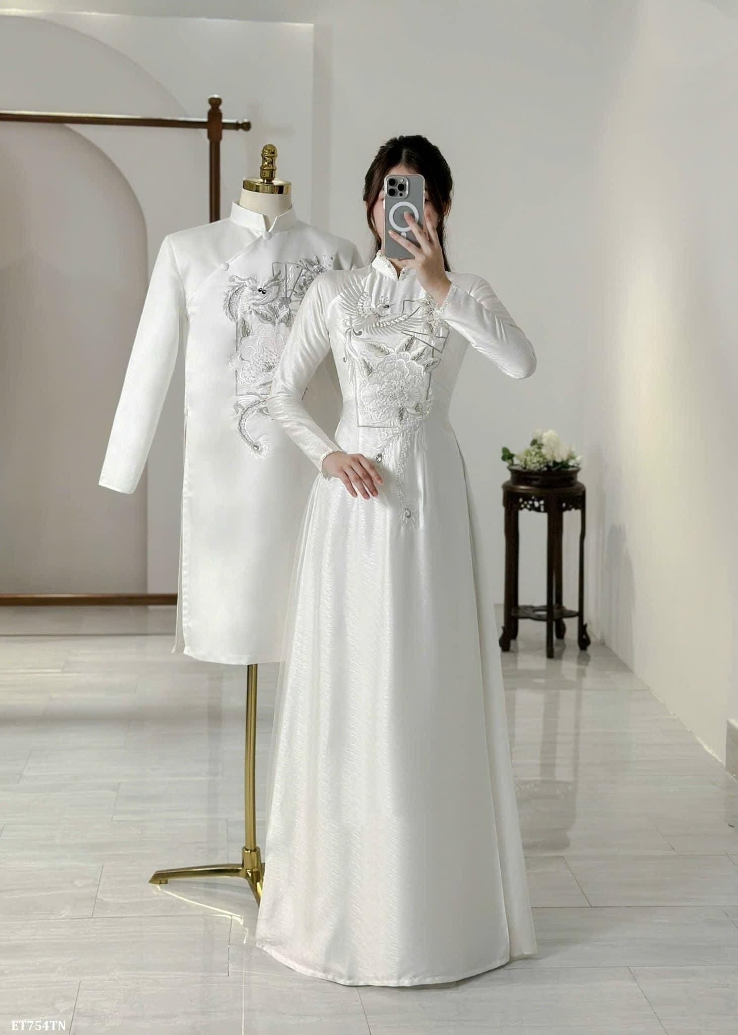 ÁO DÀI CƯỚI THÊU RỒNG PHỤNG SANG TRỌNG