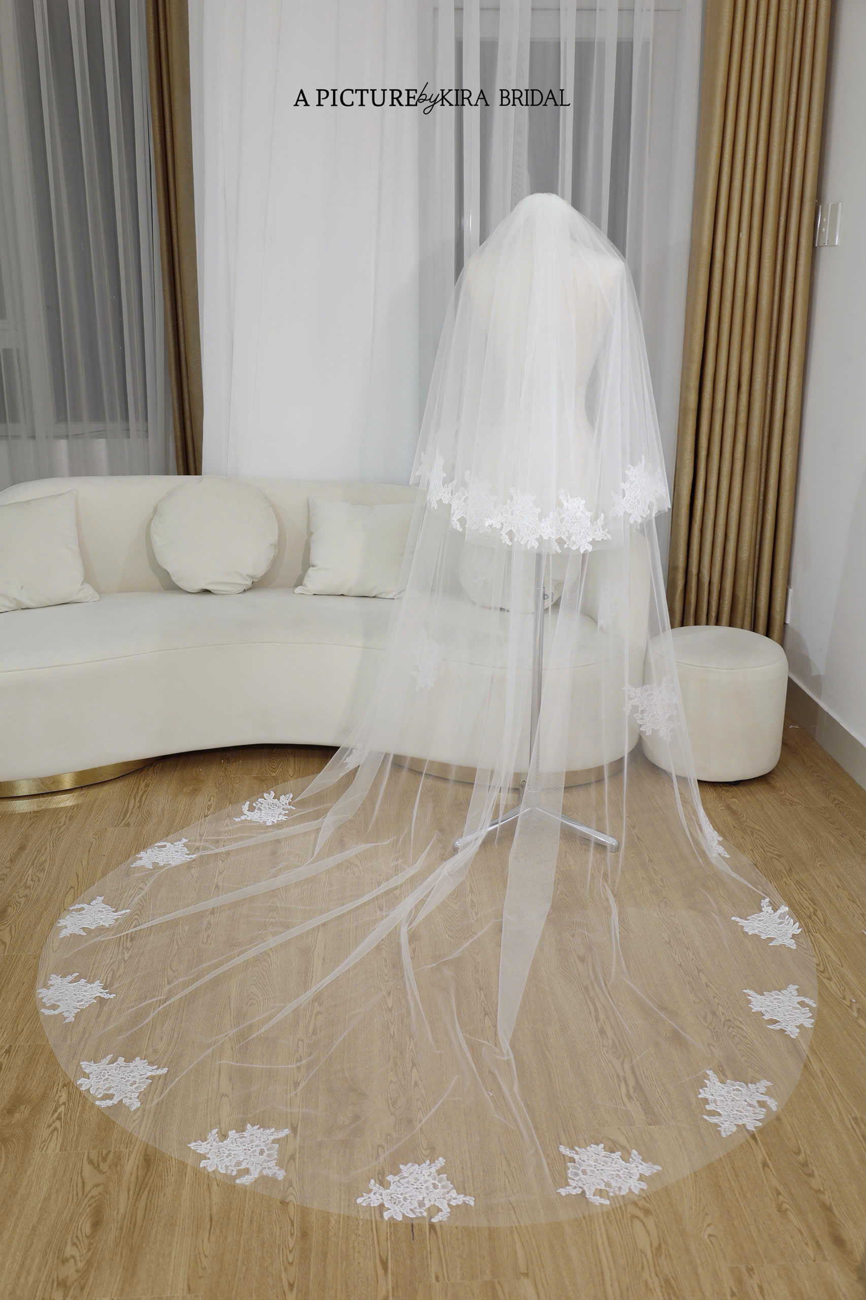 Đây là kiểu voan dài nhất, thường kéo dài hơn váy cưới từ 1–2 mét, tạo hiệu ứng hoàng gia và cực kỳ nổi bật. Voan cathedral thường xuất hiện trong các lễ cưới quy mô lớn hoặc mang phong cách sang trọng, đẳng cấp.