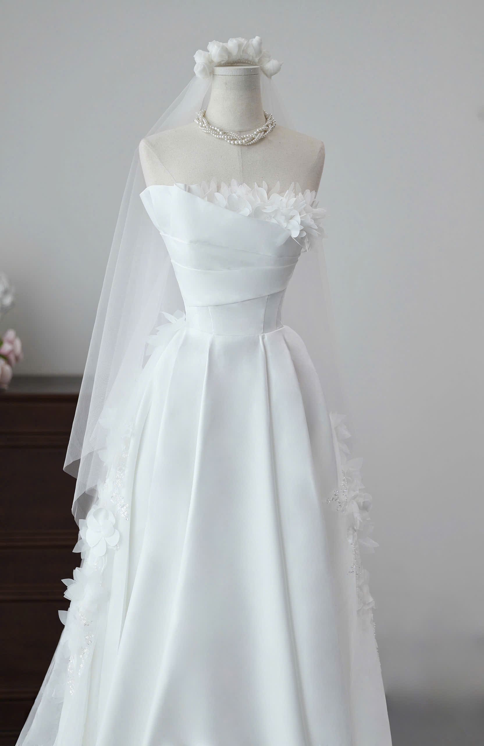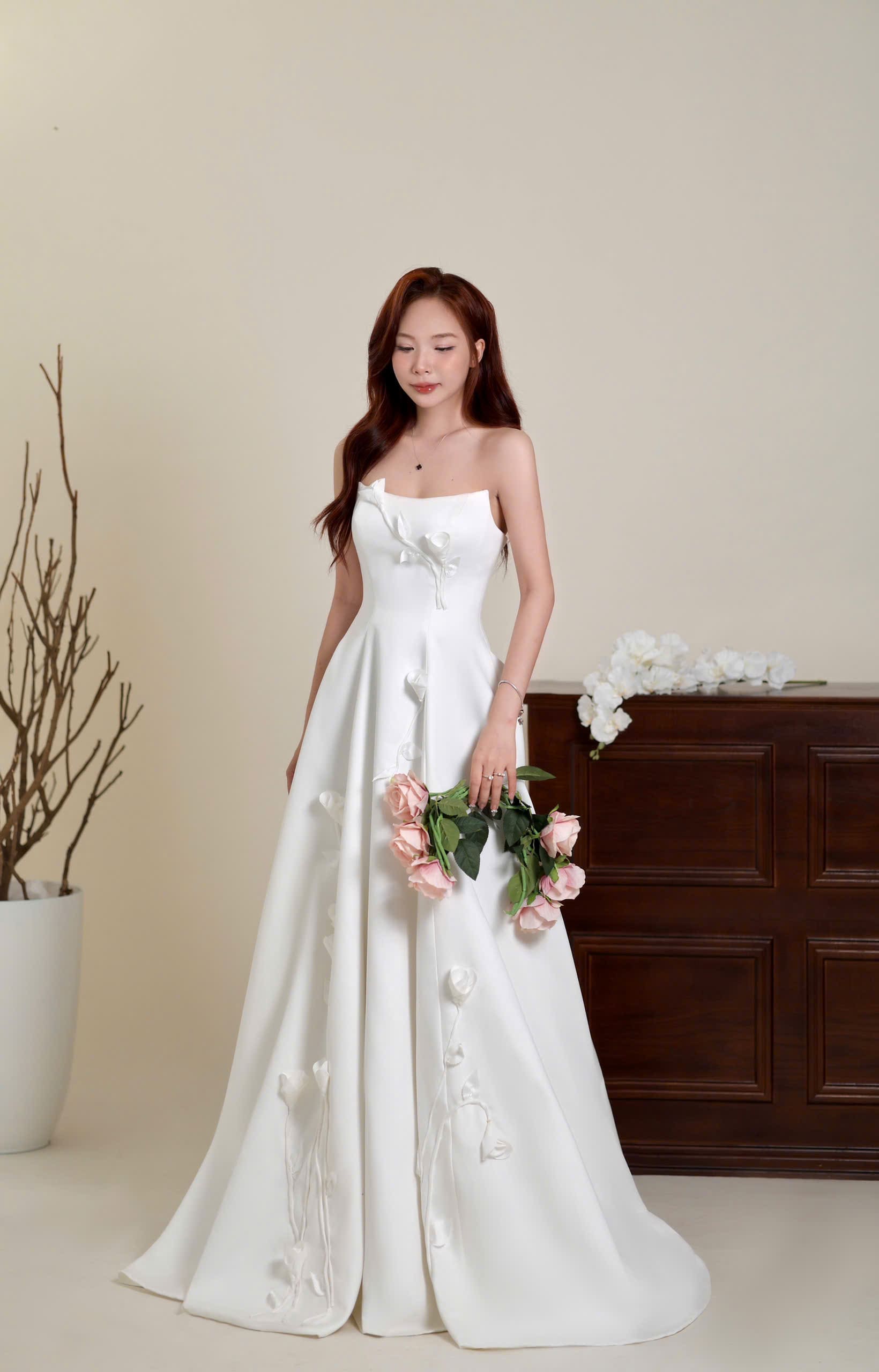 1. VÁY CƯỚI FORM A CÚP NGỰC KẾT HOA VOAN QUYẾN RŨ