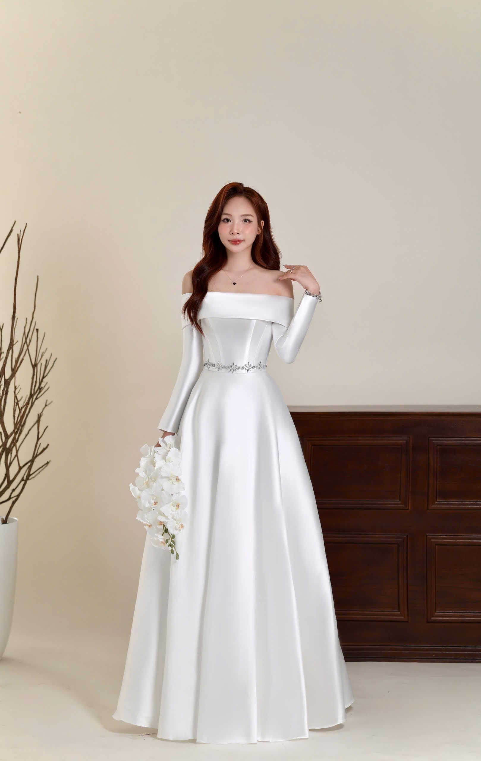 - 6. VÁY CƯỚI FORM A TRỄ VAI TAY DÀI THANH LỊCH