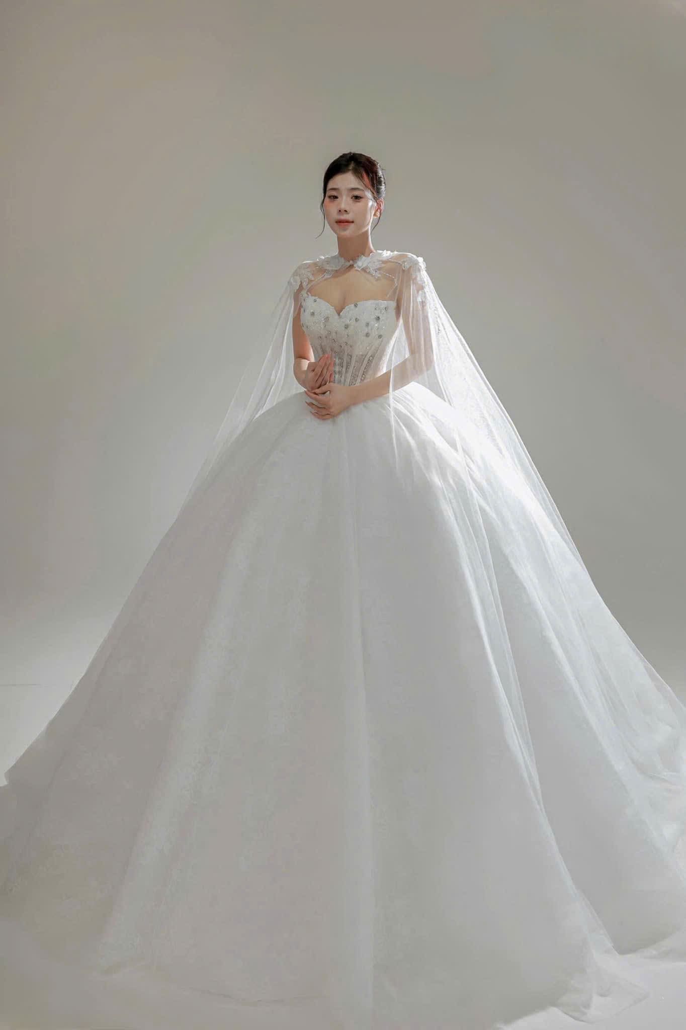 Chiếc áo cưới mang phong cách công chúa này có những thiết kế vô cùng nữ tính và sang trọng với phần thân váy bồng bềnh kết hợp với những chi tiết đính đá độc đáo. Chiếc váy cưới công chúa này thích hợp với với những cô nàng muốn hoán thân thành một cô công chú đang tìm chàng hoàng tử của đời mình. Với phần áo choàng đi kèm sẽ giúp các cô dâu che được khuyết điểm mà lại cực kỳ nổi bật và tinh tế.