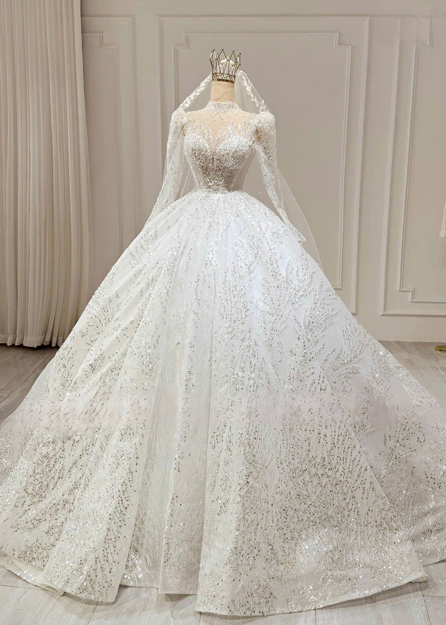 Hơn thế nữa, váy cưới có kiểu dáng công chúa có đặc điểm là có thể che đi hoàn hảo mọi khuyết điểm dáng người. Thế nên, chiếc váy cười này có mặt trong 5 mẫu váy cưới từ 3 đến 5 triệu đáng mua nhất. Bên canh đó, kết hợp váy cưới công chúa với đính kết đá lấp lánh cùng thiết kế tay dài sẽ giúp cô dâu trở nên tinh tế nhưng vẫn kiêu sa và lộng lẫy.