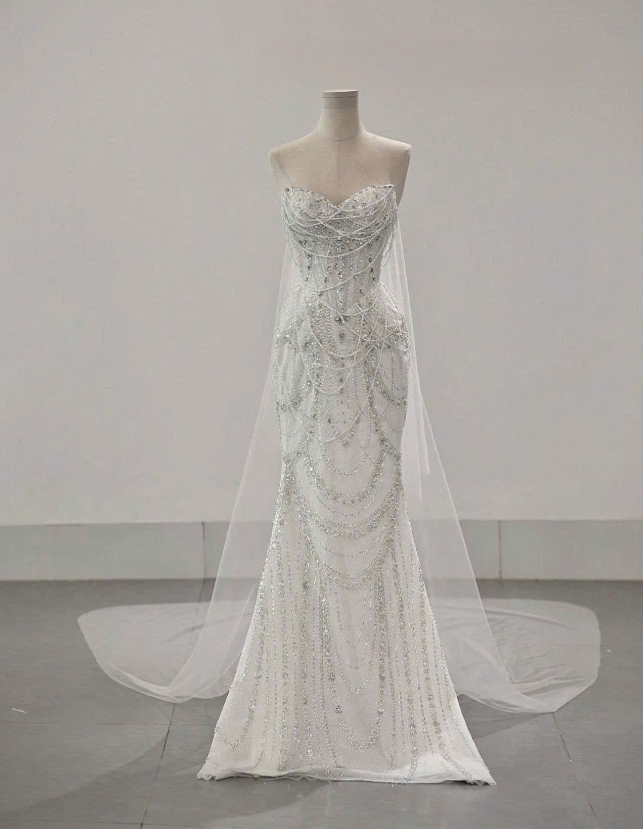 2. VÁY CƯỚI ĐUÔI CÁ KÈM CHOÀNG KẾT SAPPHIRE SANG TRỌNG