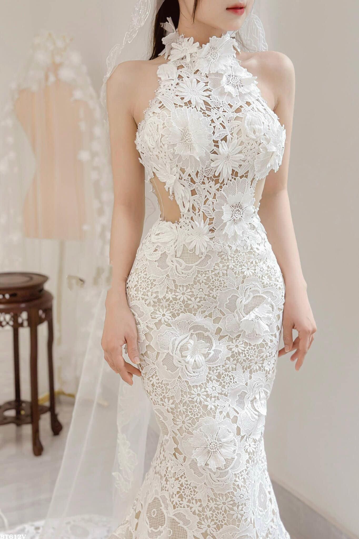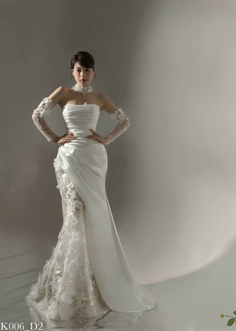 Xu hướng trong những năm gần đây không thể không nhắc đến váy cưới đuôi cá, một thiết kế giúp cô dâu khéo léo khoe được sự cuốn hút và đường cong mềm mại của mình.