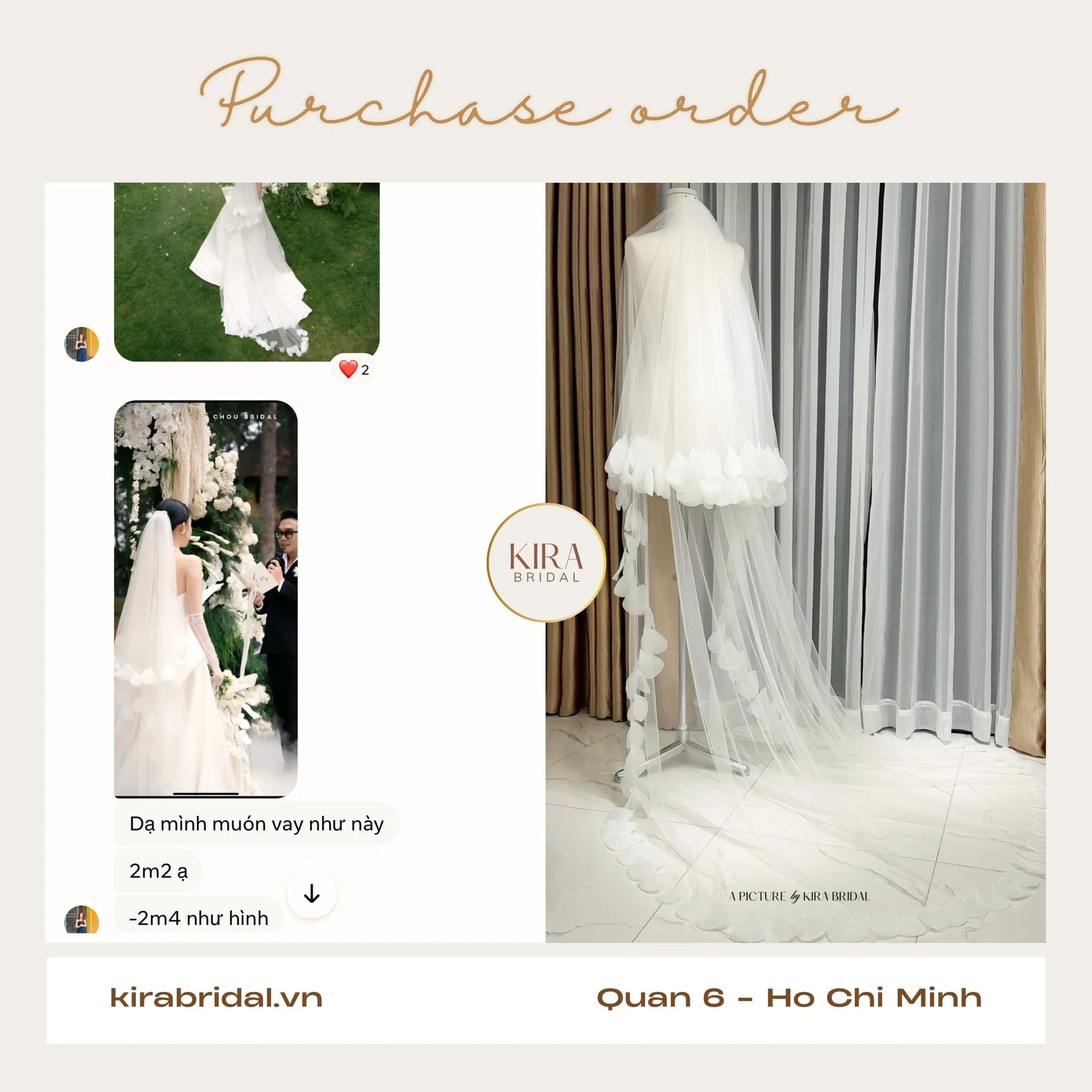 Đừng tiếc một chiếc voan xinh cho ngày cưới, vì khoảnh khắc này chỉ được ghi lại một lần trong đời bạn thôi… Hãy nhắn ngay cho Kira để được tư vấn bạn nhé💗