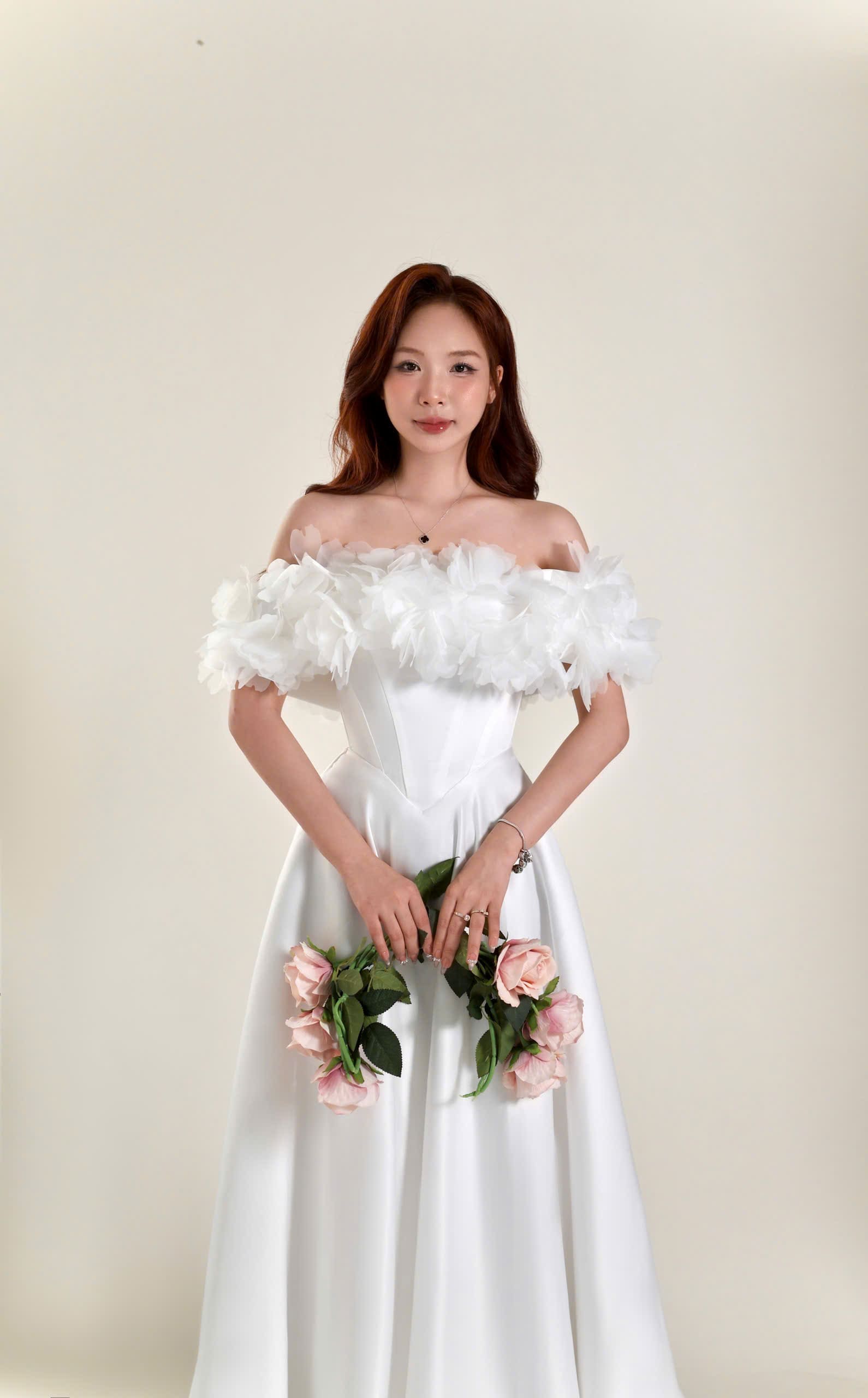 VÁY CƯỚI FORM A TRỄ VAI BÈO VOAN XINH XẮN