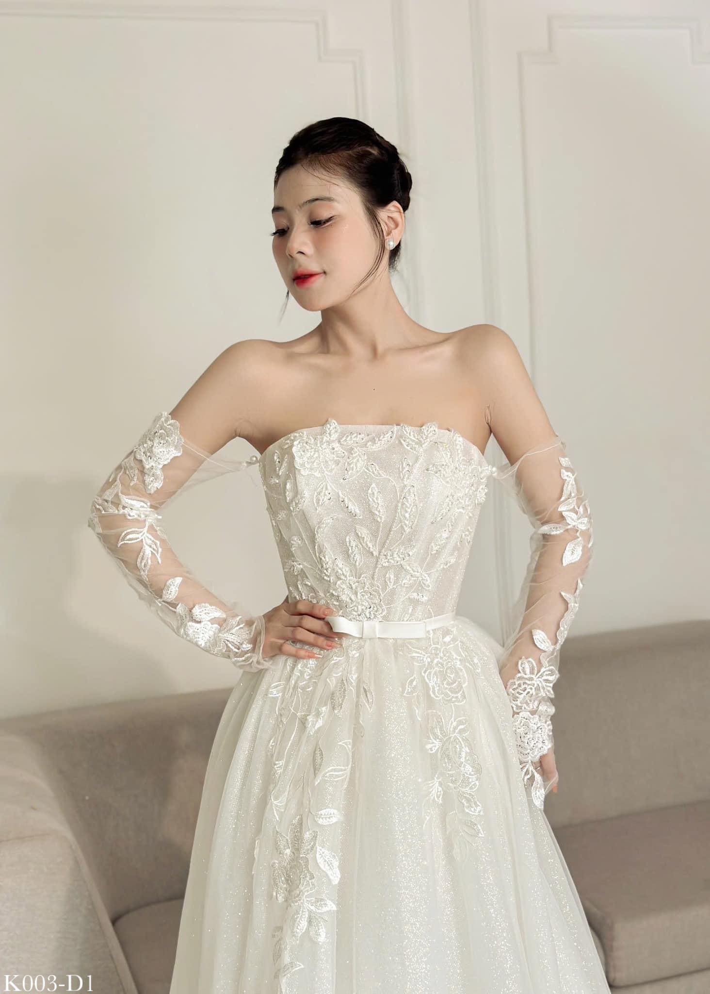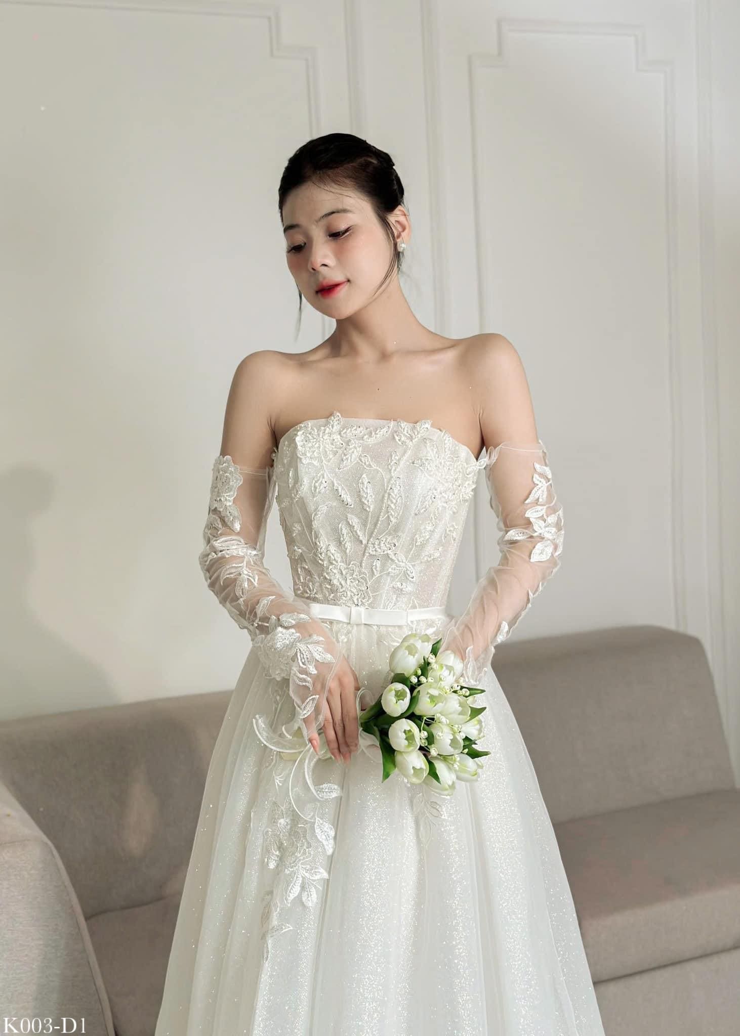 Thiết kế: Váy cưới cô dâu đi bàn, thiết kế 3 trong 1 kèm tay rời, bản vai rời