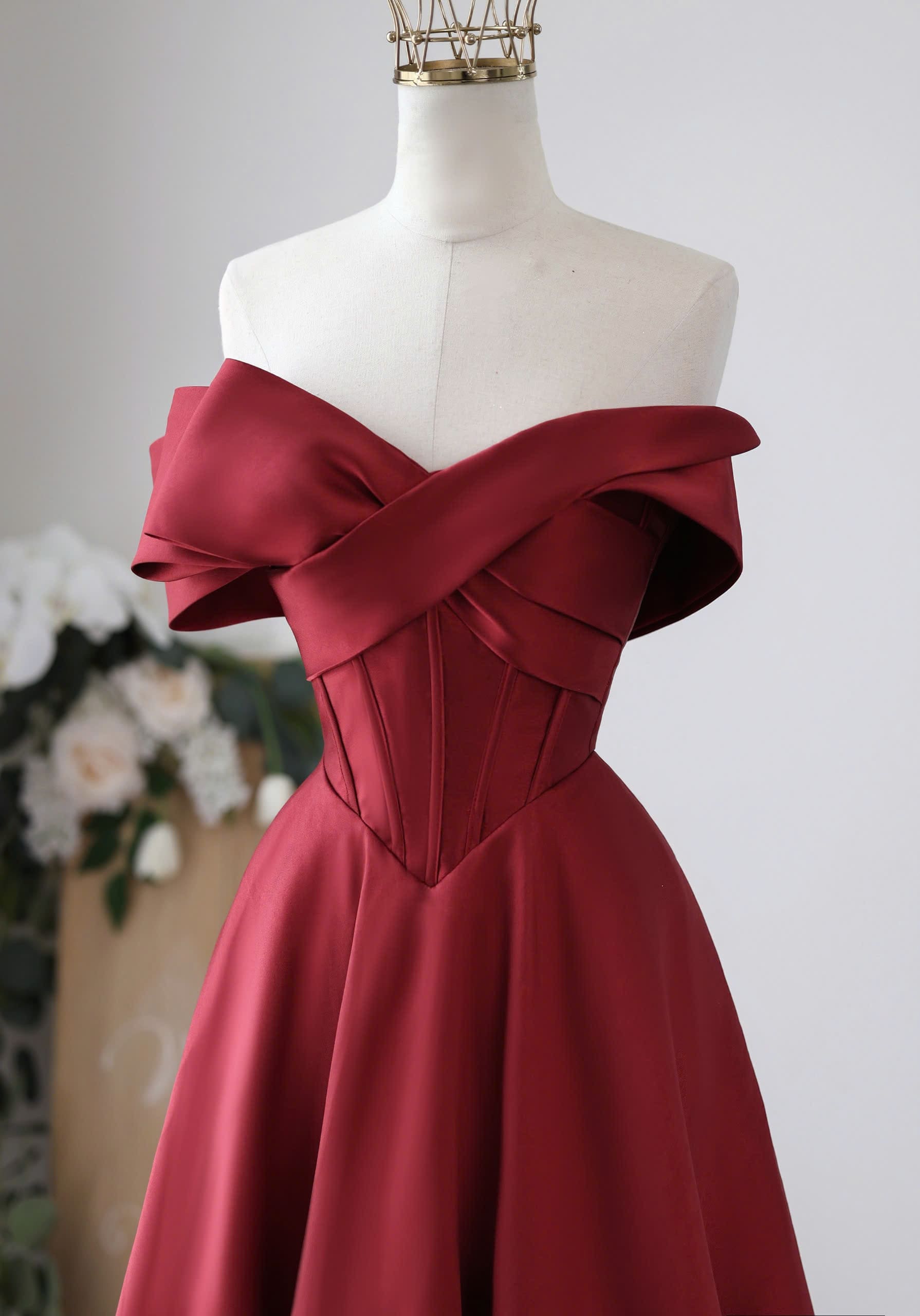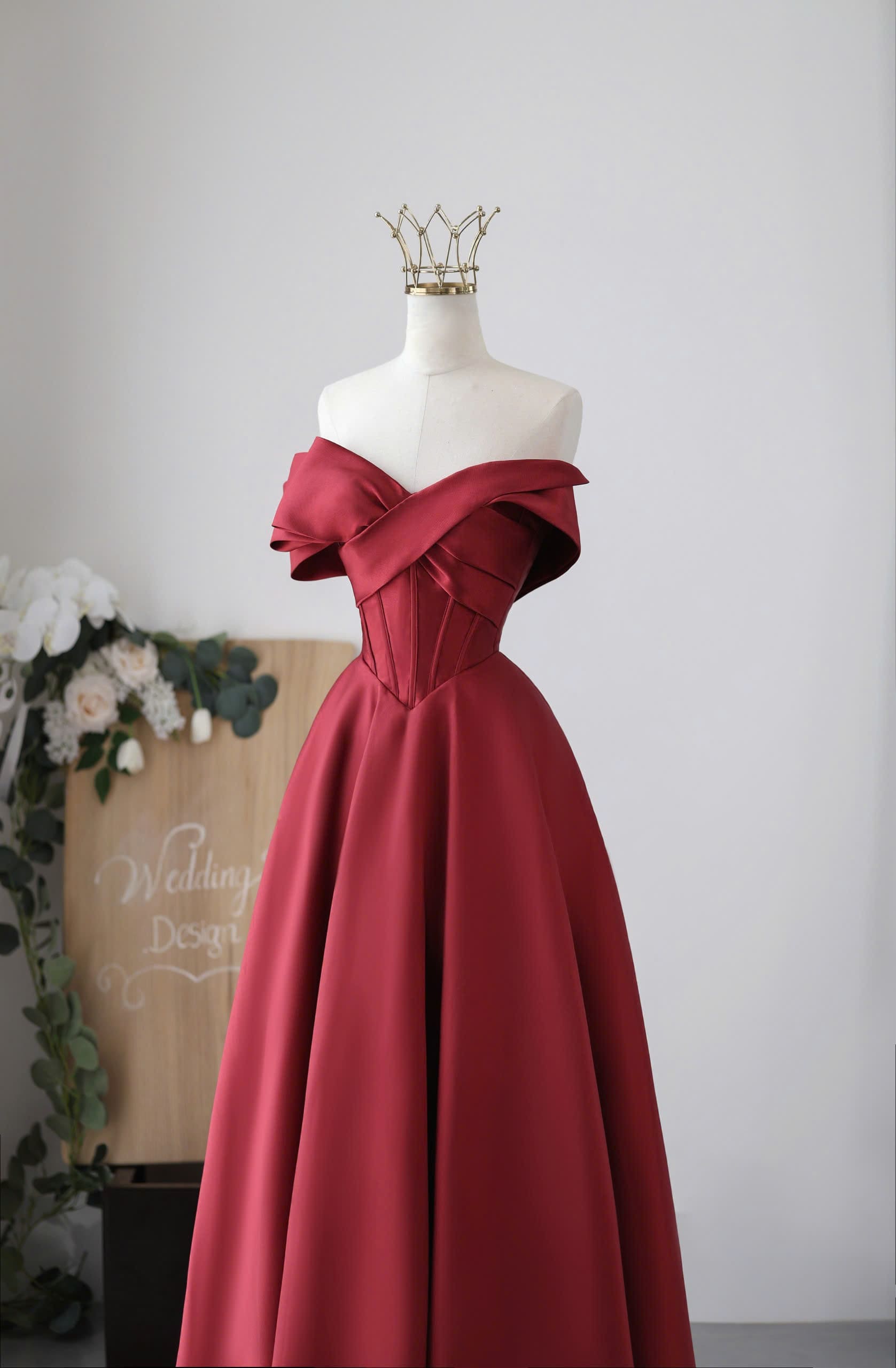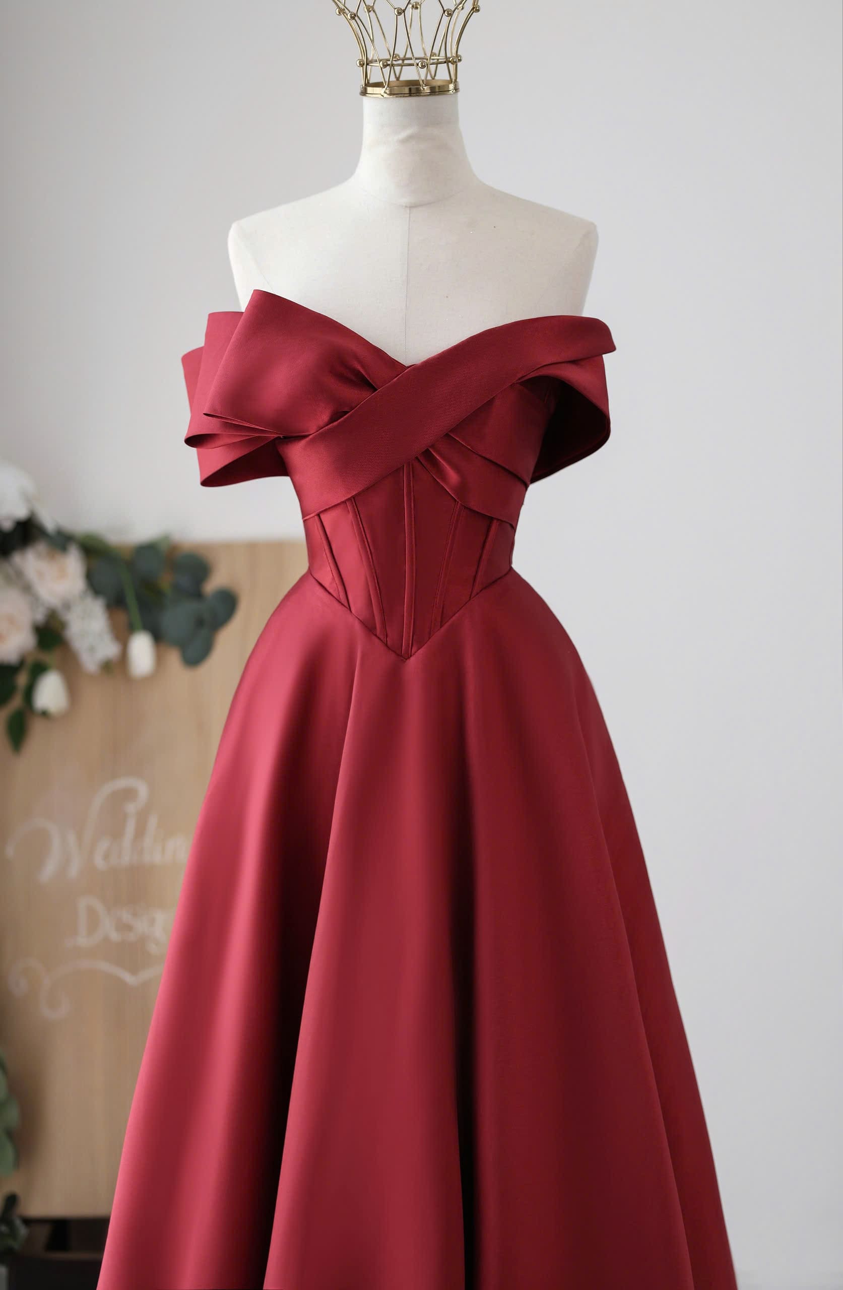 VÁY ĐI BÀN CÔ DÂU FORM A TONE ĐỎ KIỂU TRỄ VAI