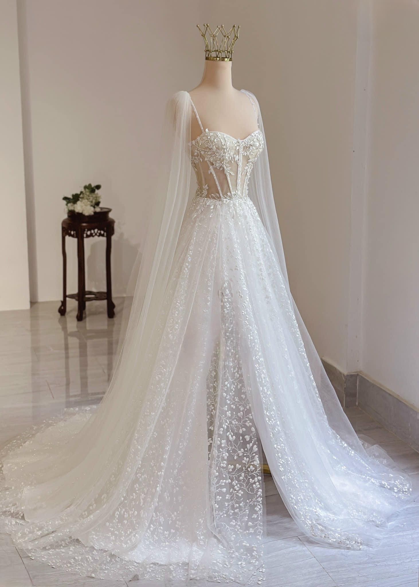 VÁY CƯỚI CHỮ A CÚP NGỰC CÓ 2 DÂY