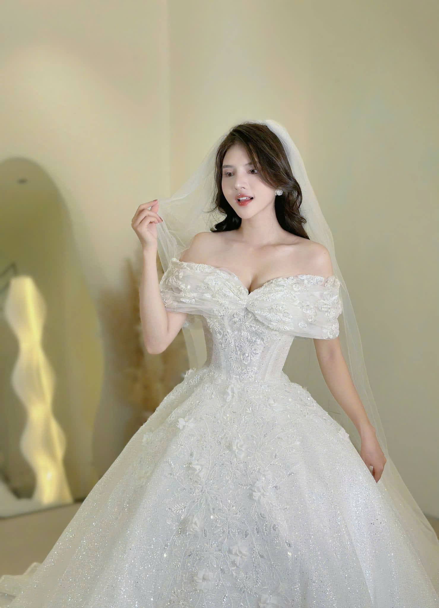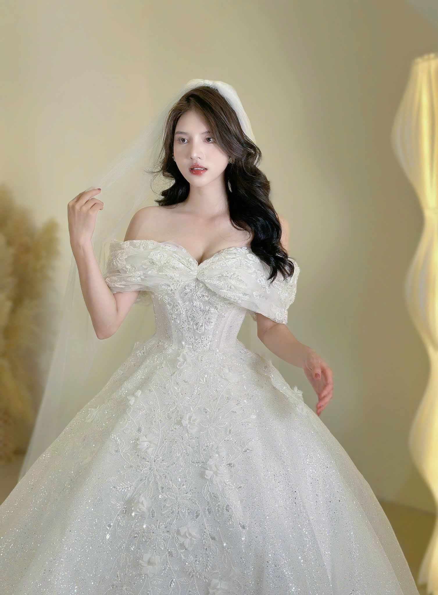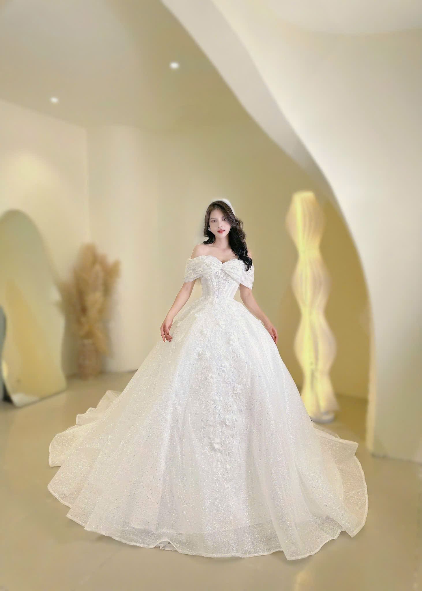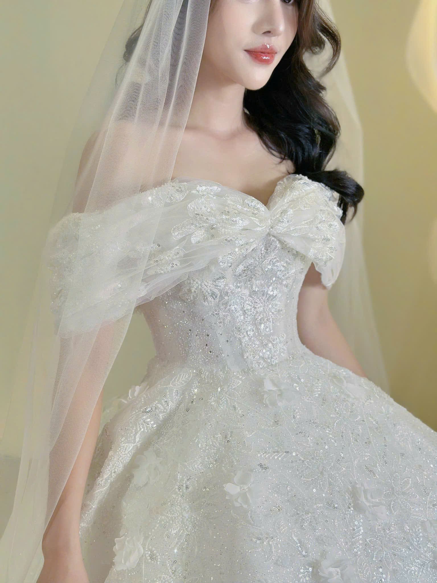 VÁY CƯỚI CÔ DÂU CÓ ĐÍNH CƯỜM VÀ THÊU HOA
