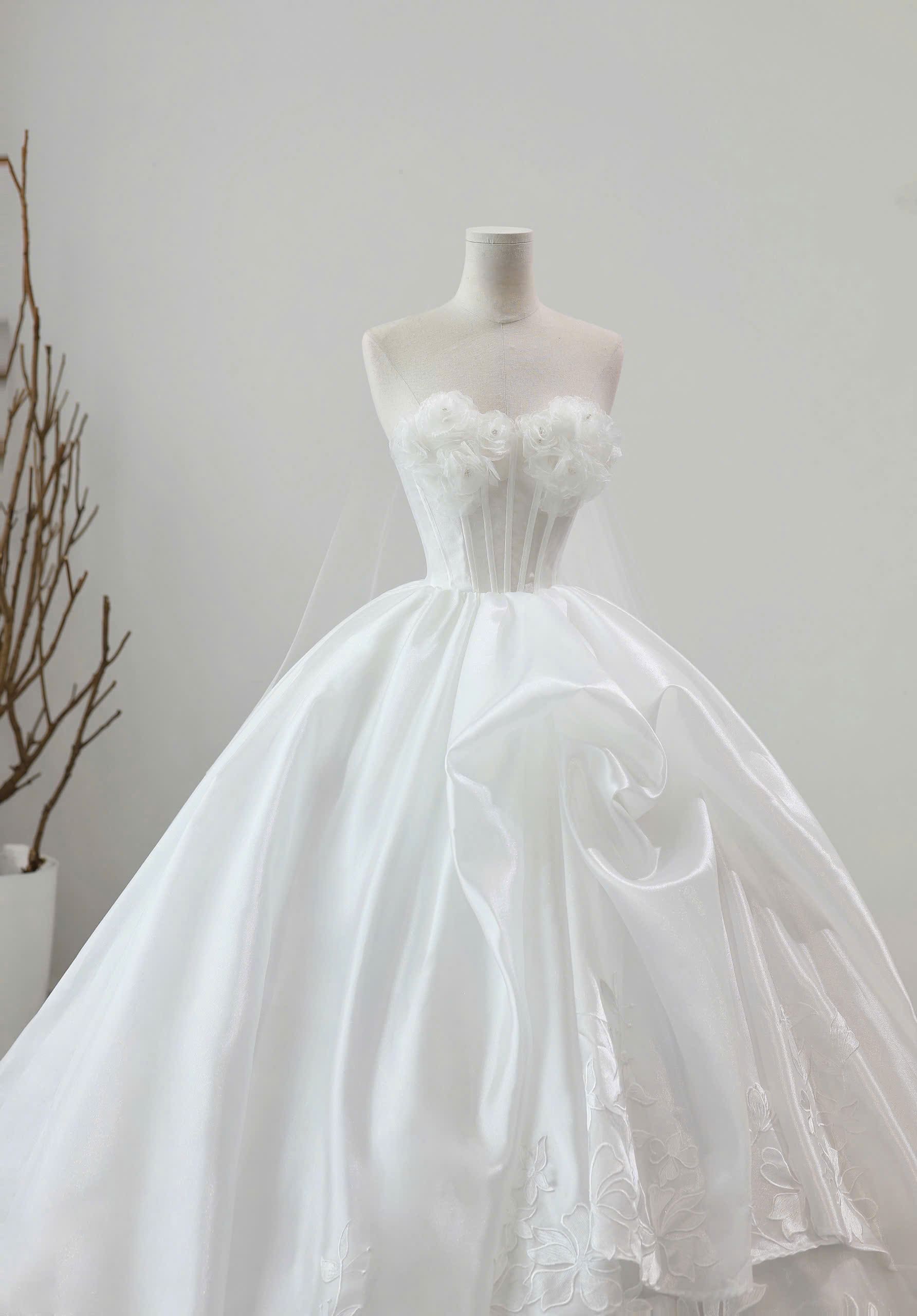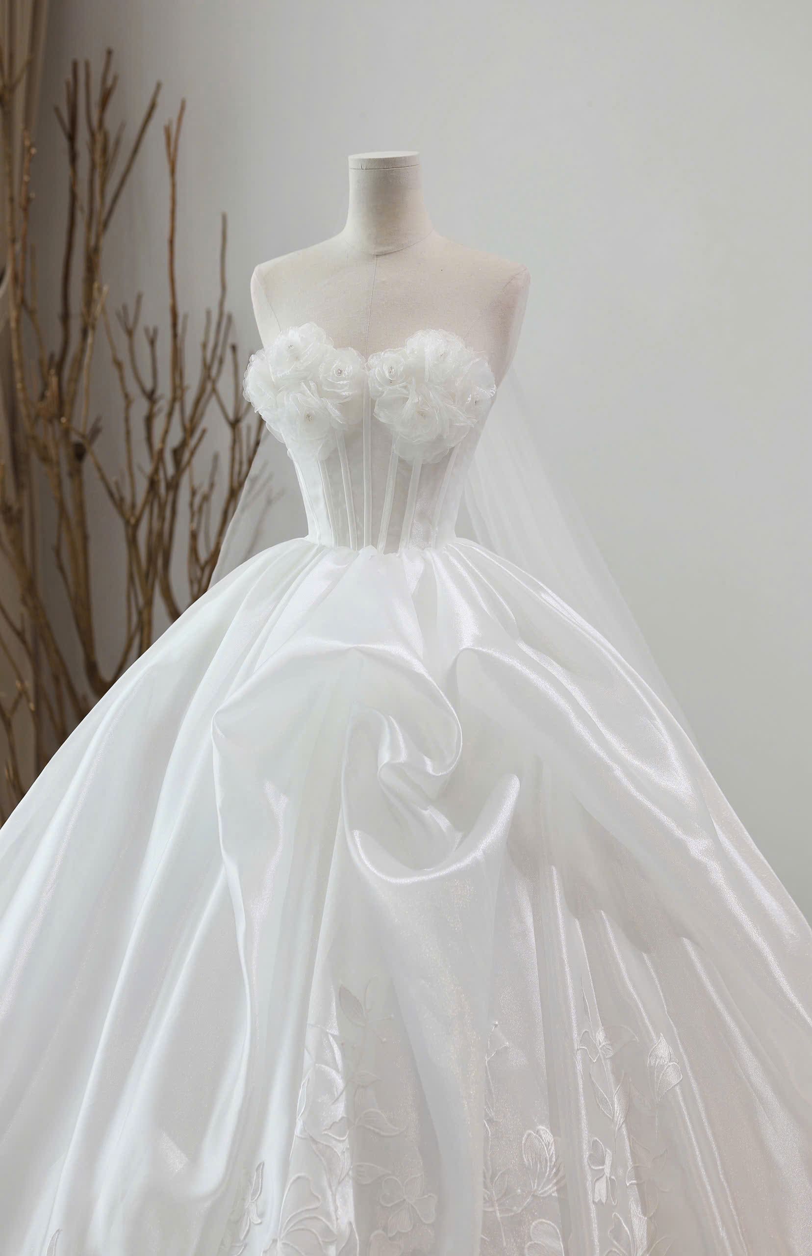 VÁY CƯỚI CÚP NGỰC KẾT HOA VOAN TẠO ĐIỂM NHẤN CUỐN HÚT