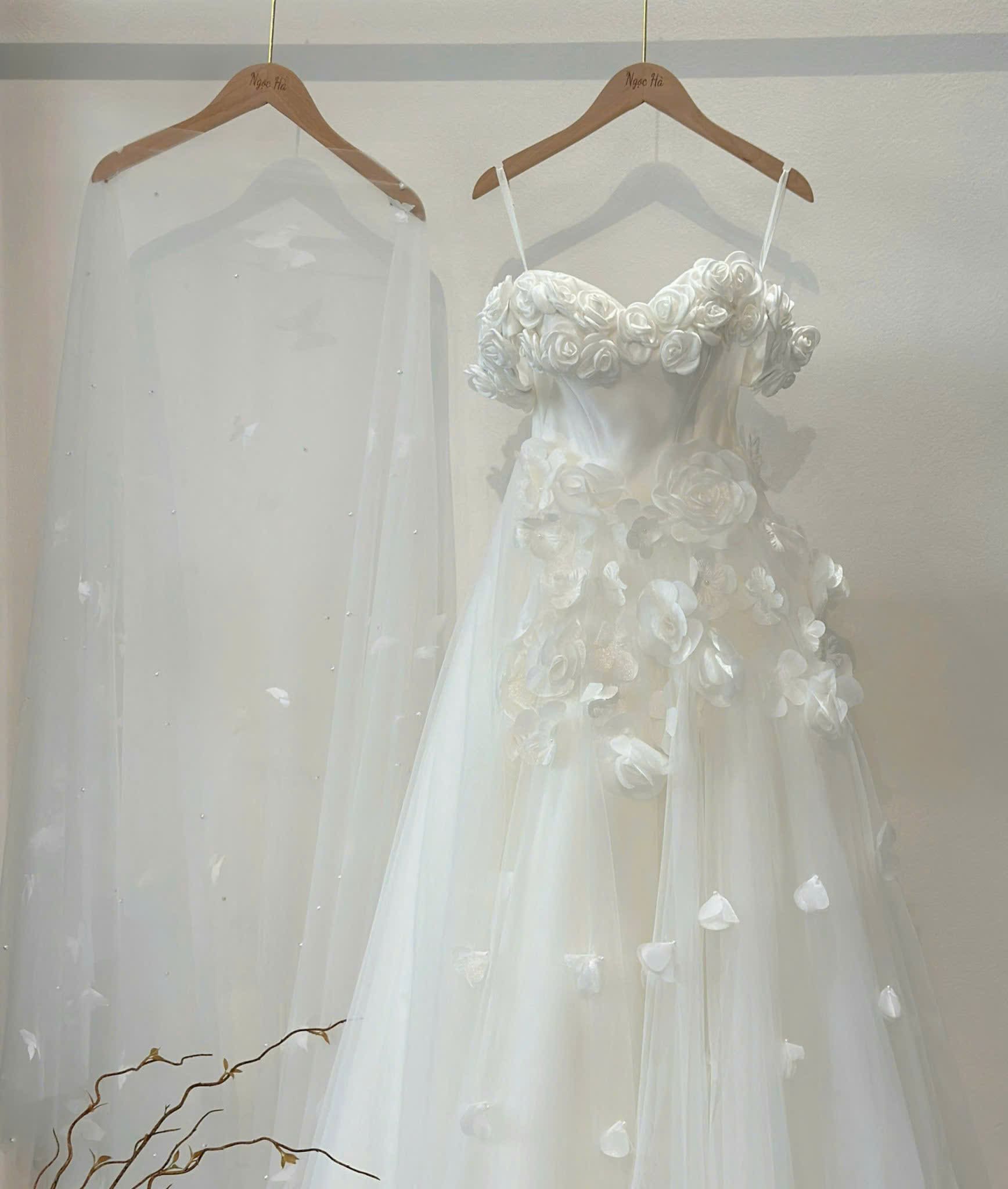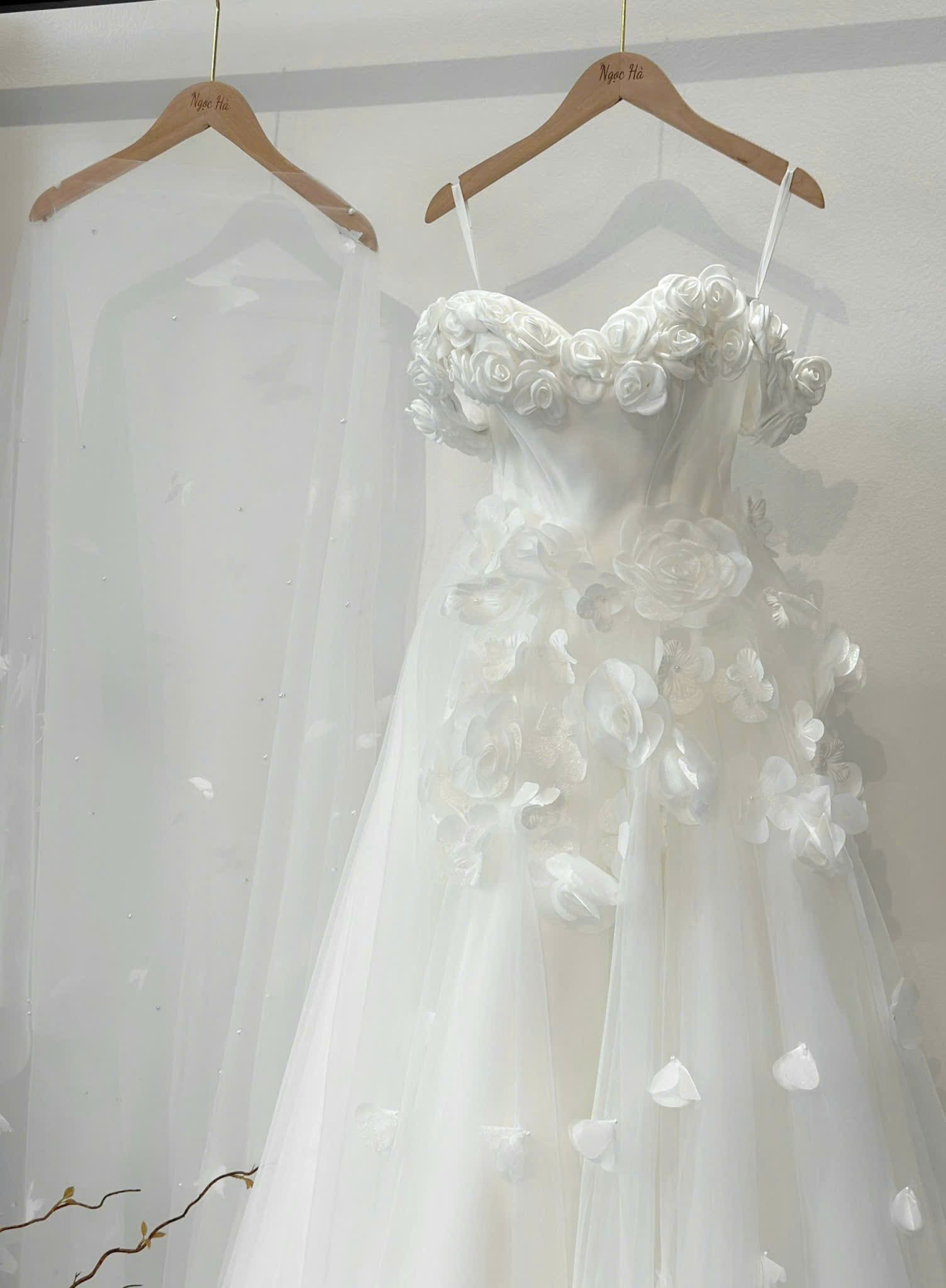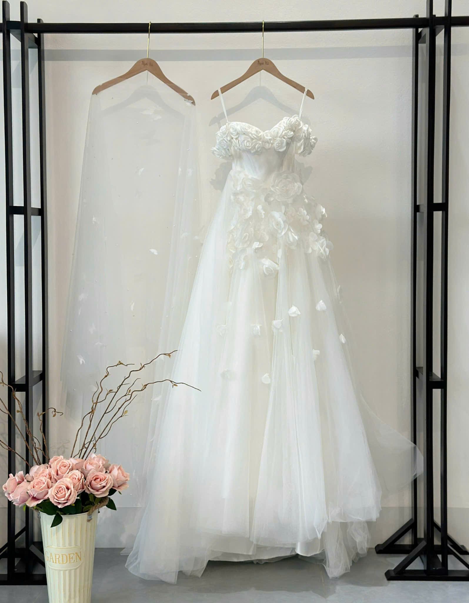 VÁY CƯỚI ĐI BÀN FORM SUÔNG KIỂU TRỄ VAI KẾT HOA XINH XẮN