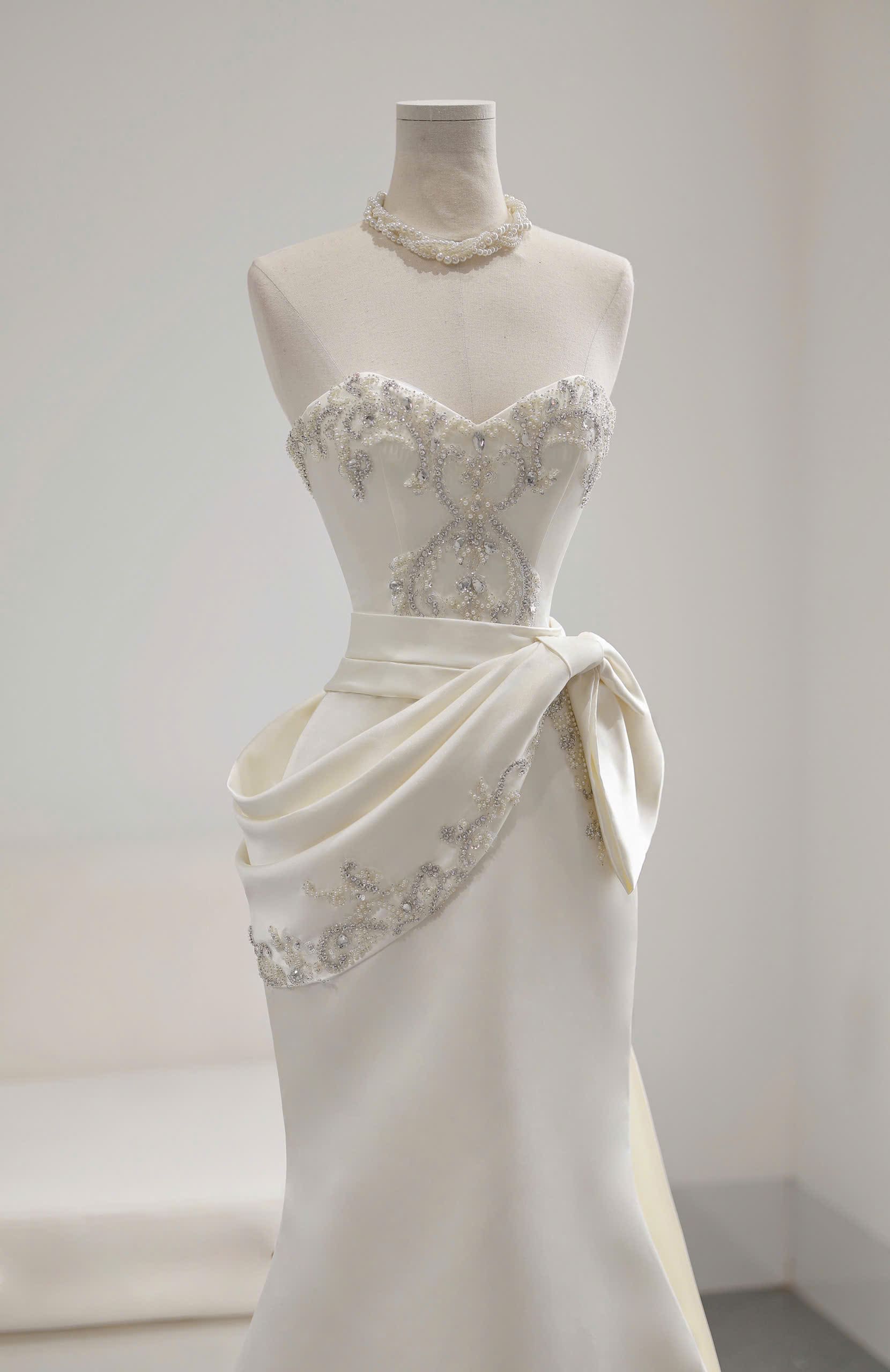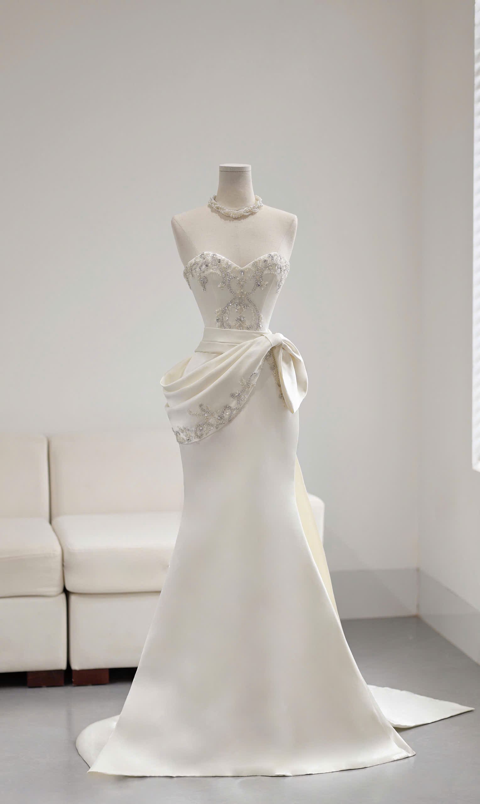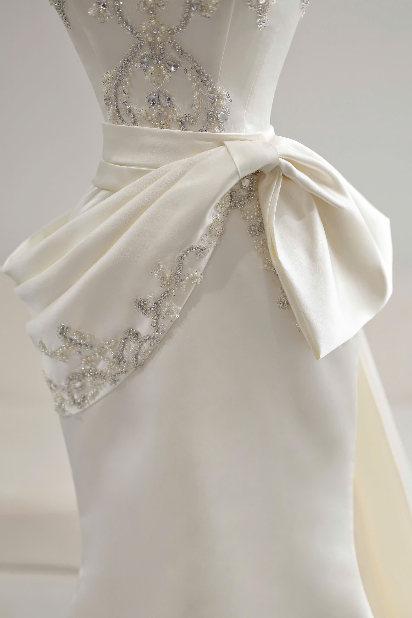 VÁY CƯỚI ĐUÔI CÁ KIỂU CÚP NGỰC KẾT ĐÁ SAPPHIRE SANG TRỌNG