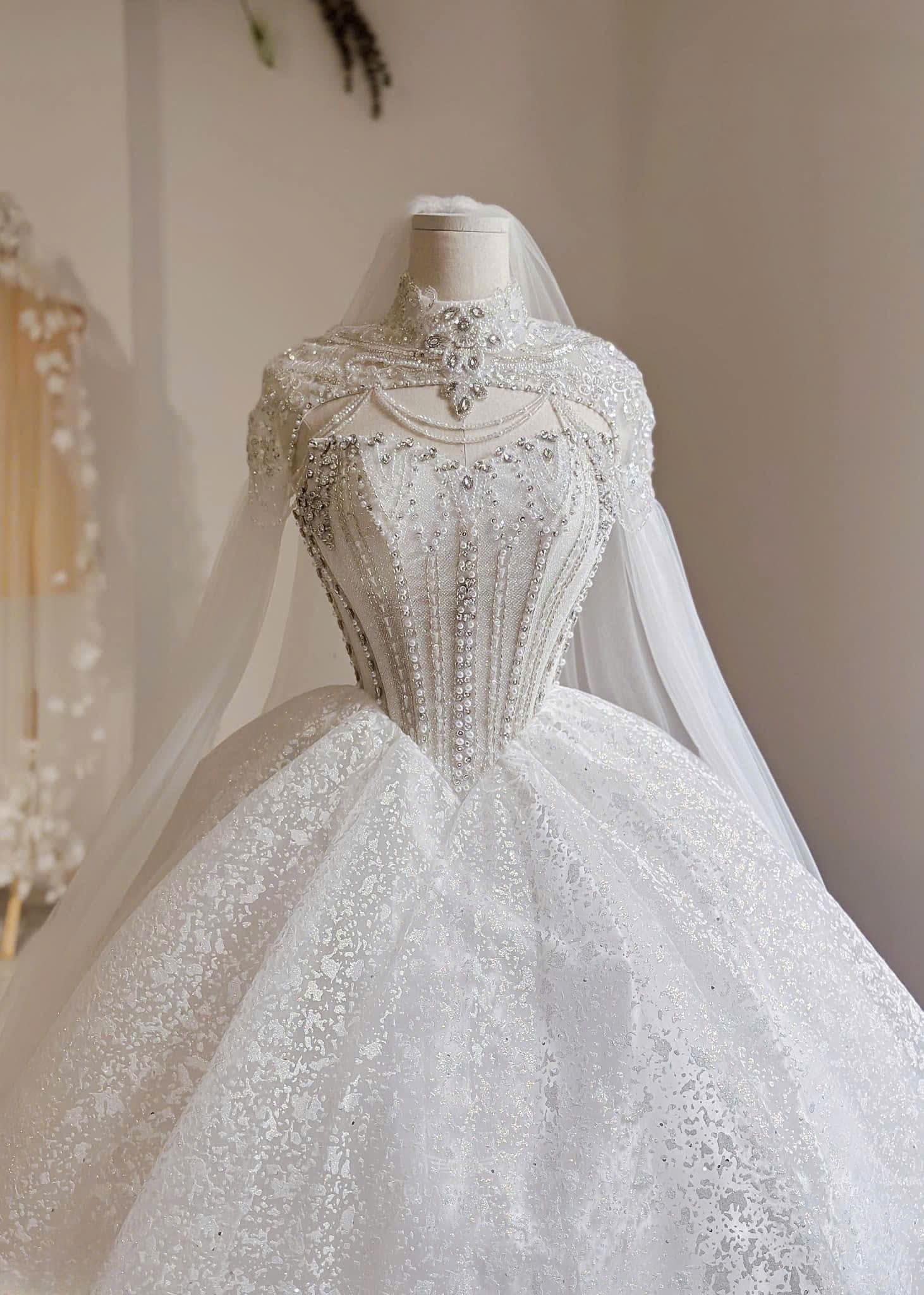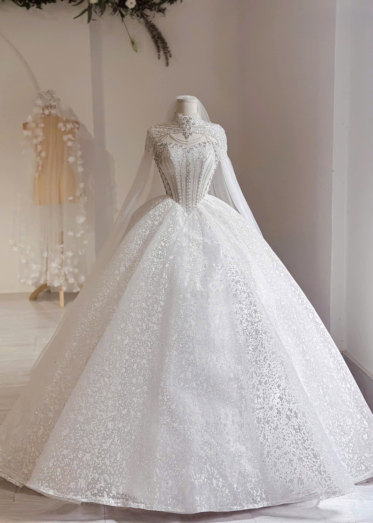 VÁY CƯỚI LÀM LỄ KIỂU CÚP NGỰC KÈM ÁO CHOÀNG ĐÍNH NGỌC