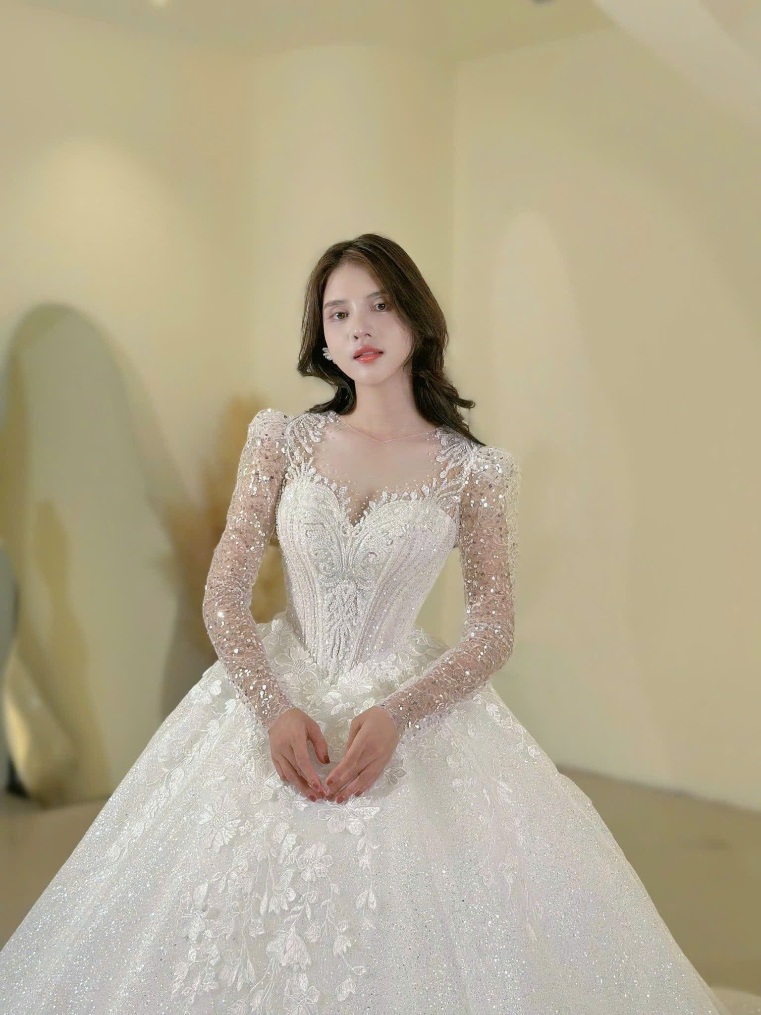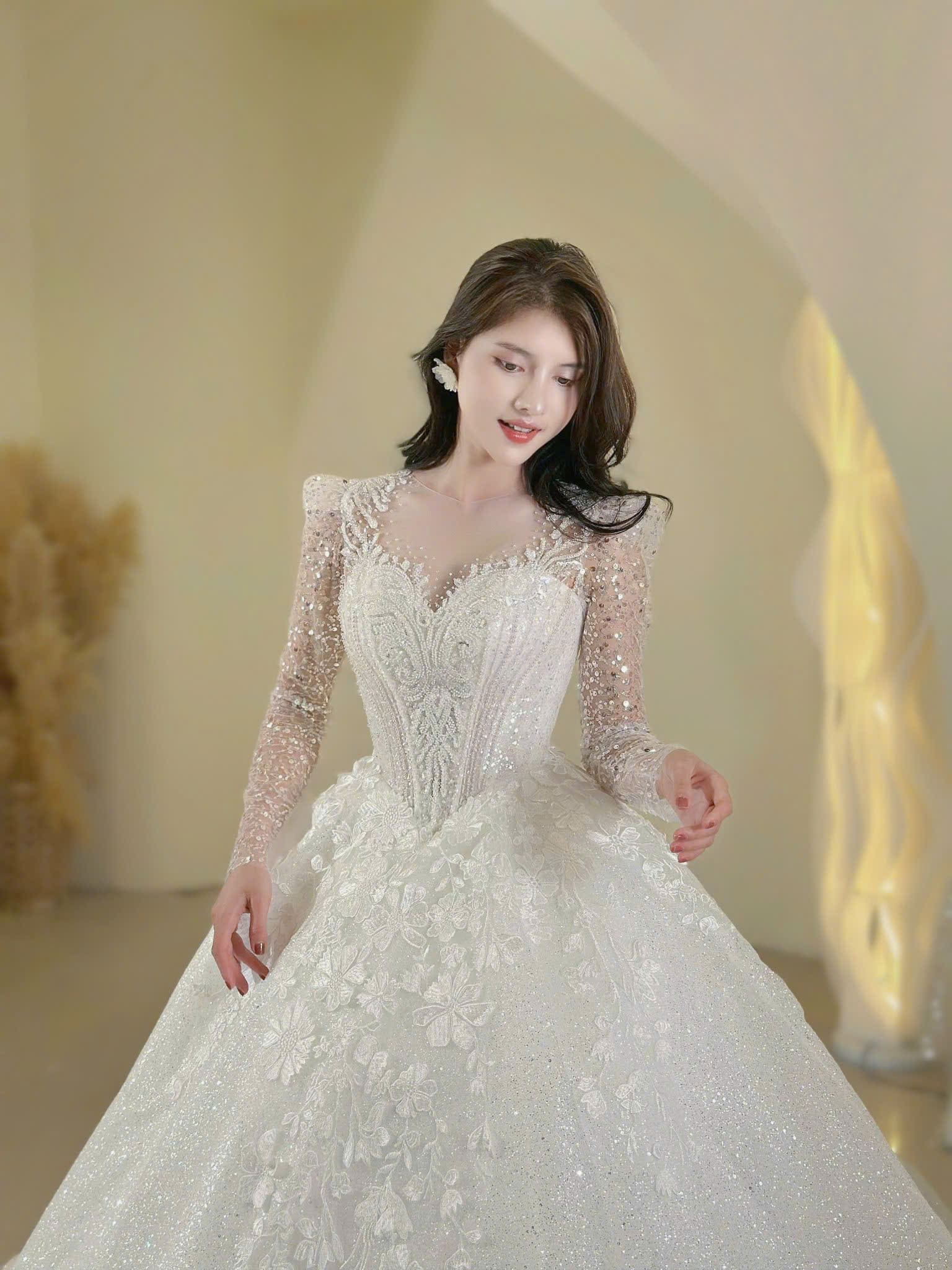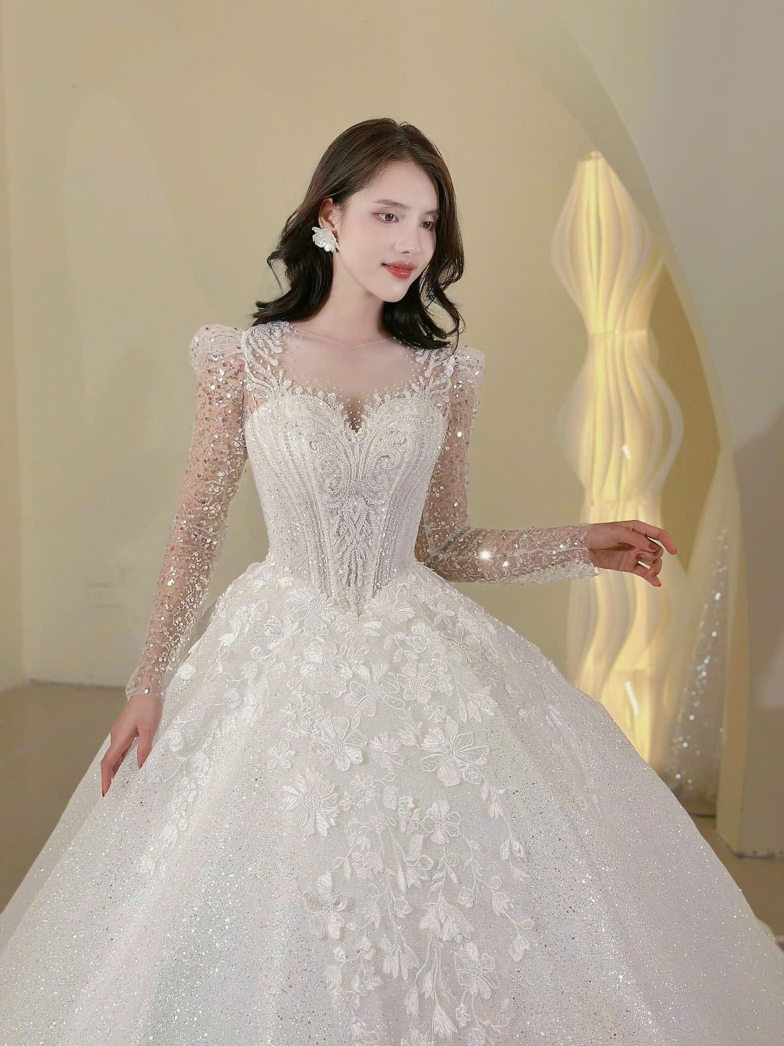 VÁY CƯỚI LÀM LỄ TAY DÀI KẾT HOA