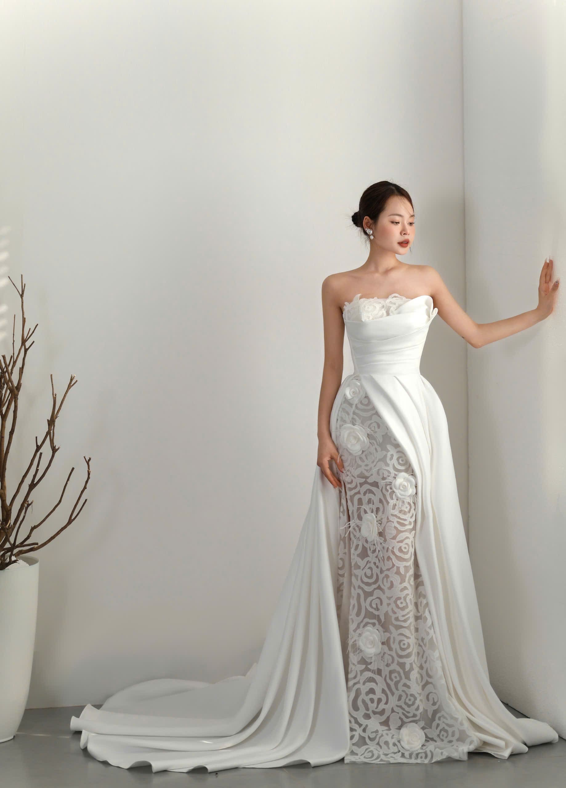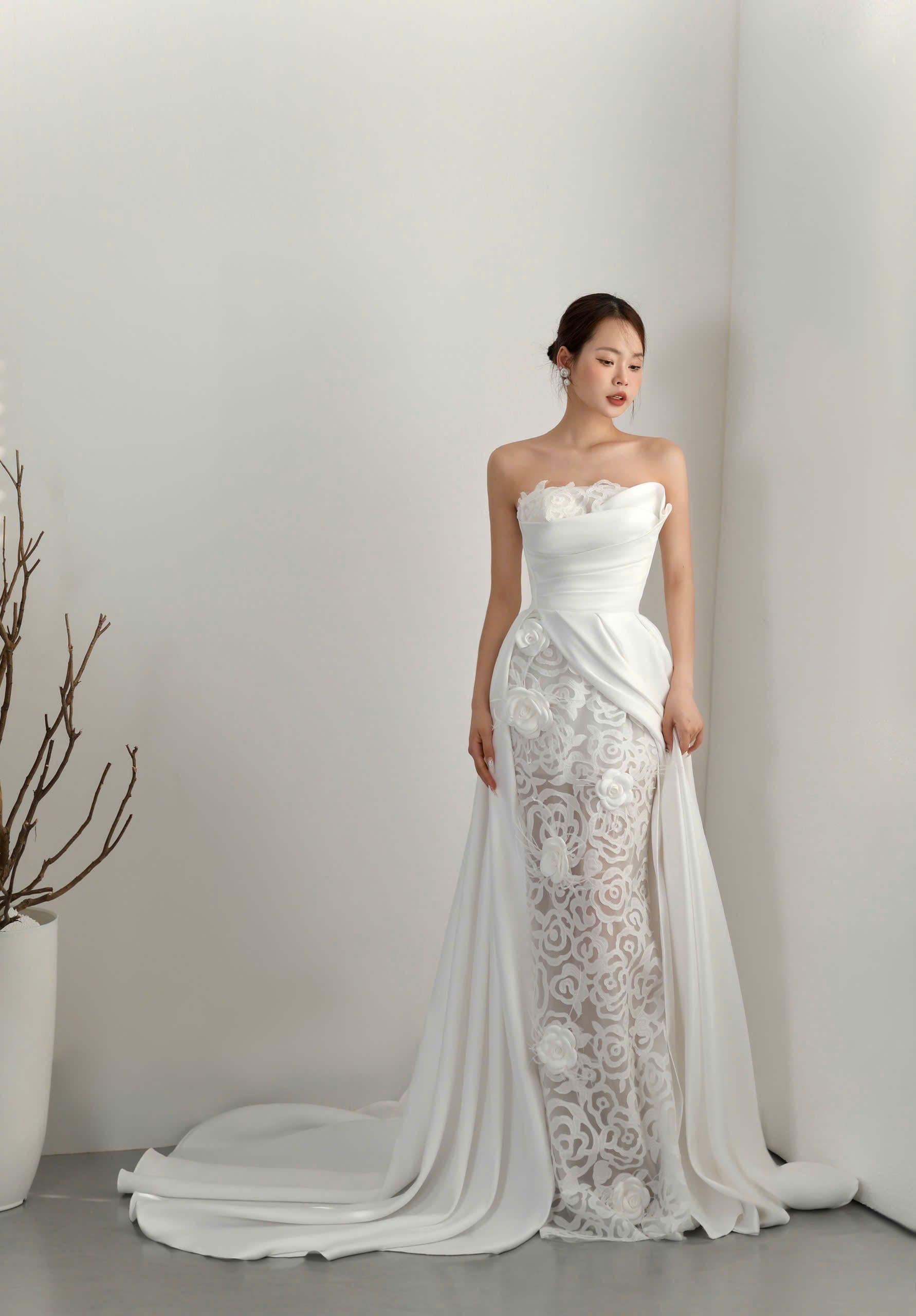 VÁY CƯỚI SUÔNG CÚP NGỰC ẨN ĐUÔI CÁ REN QUYẾN RŨ