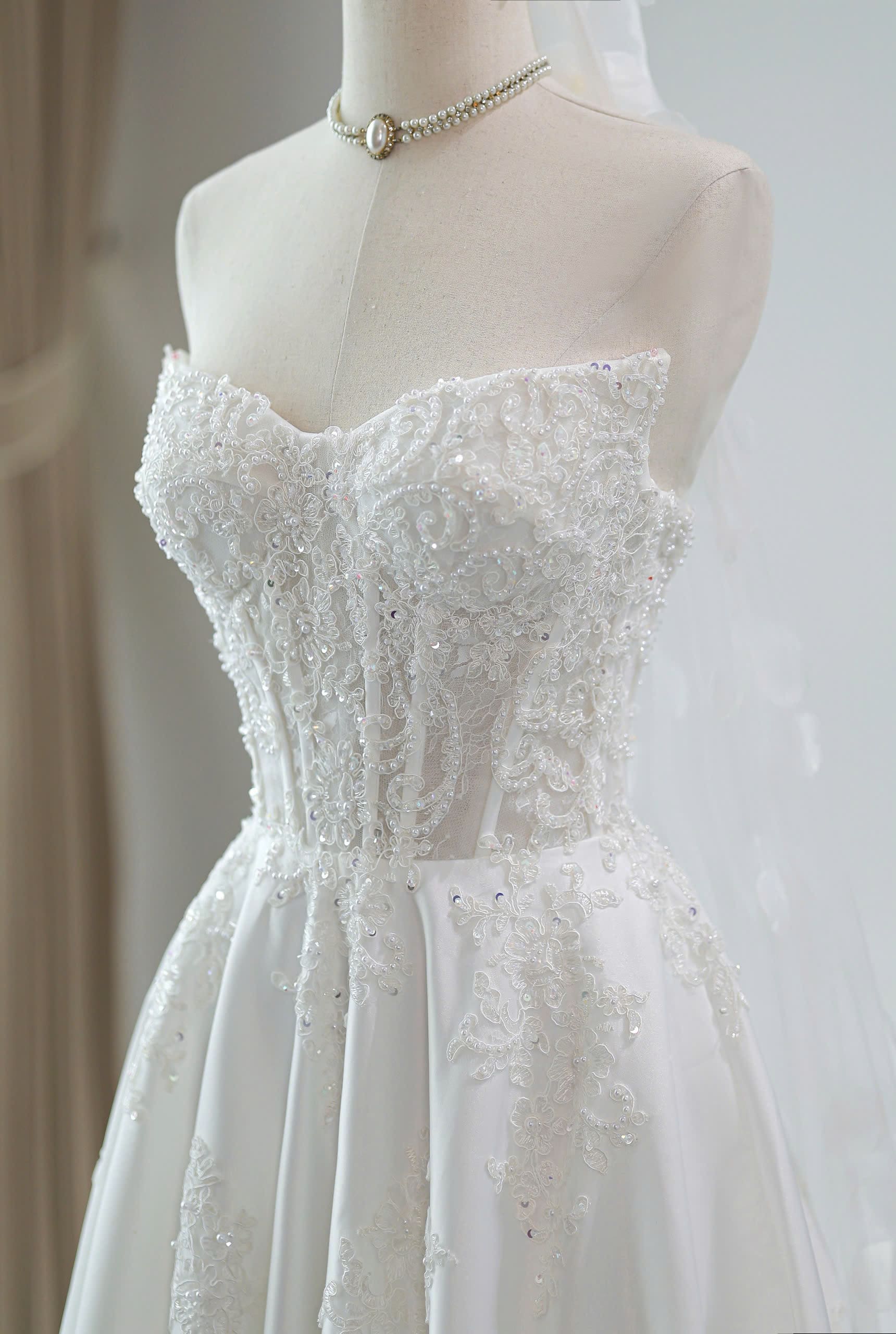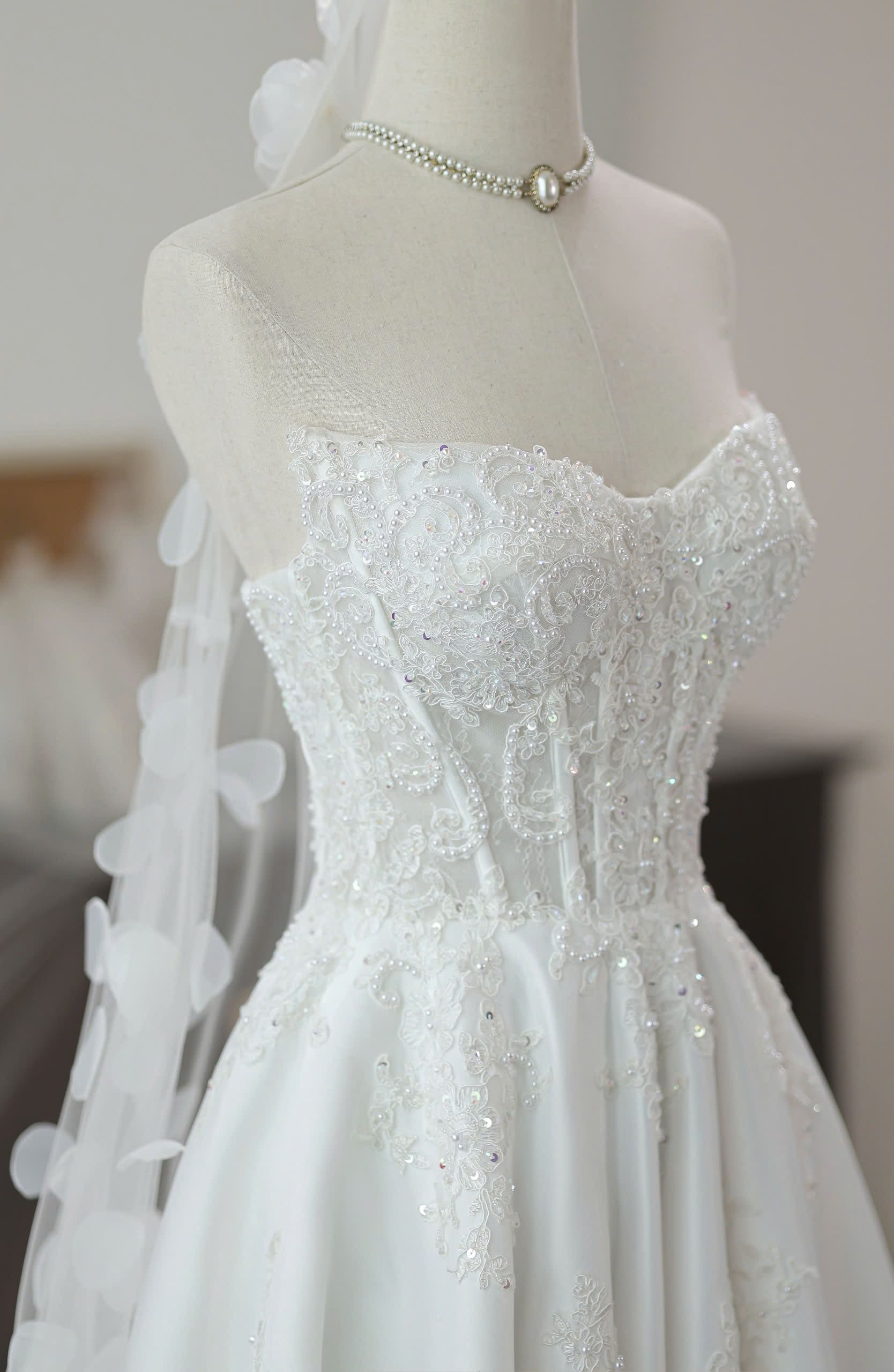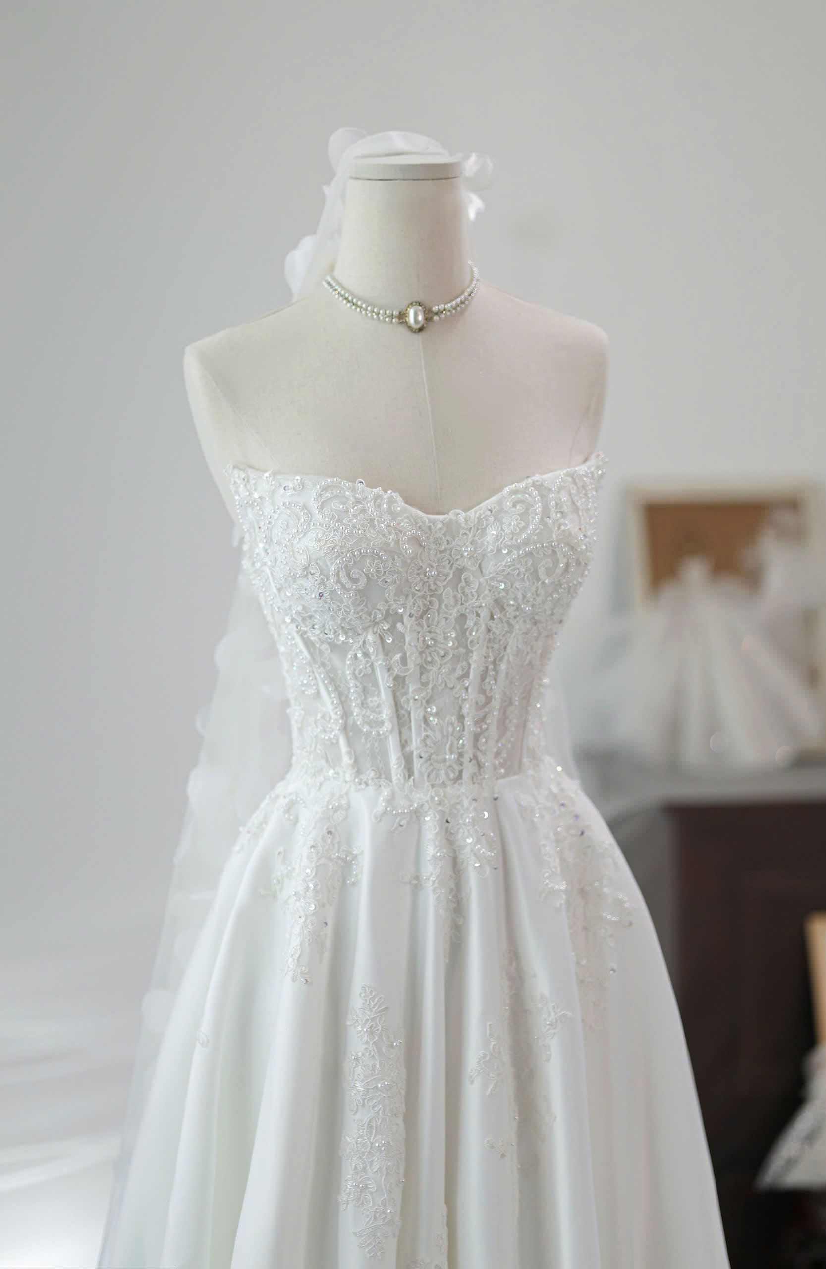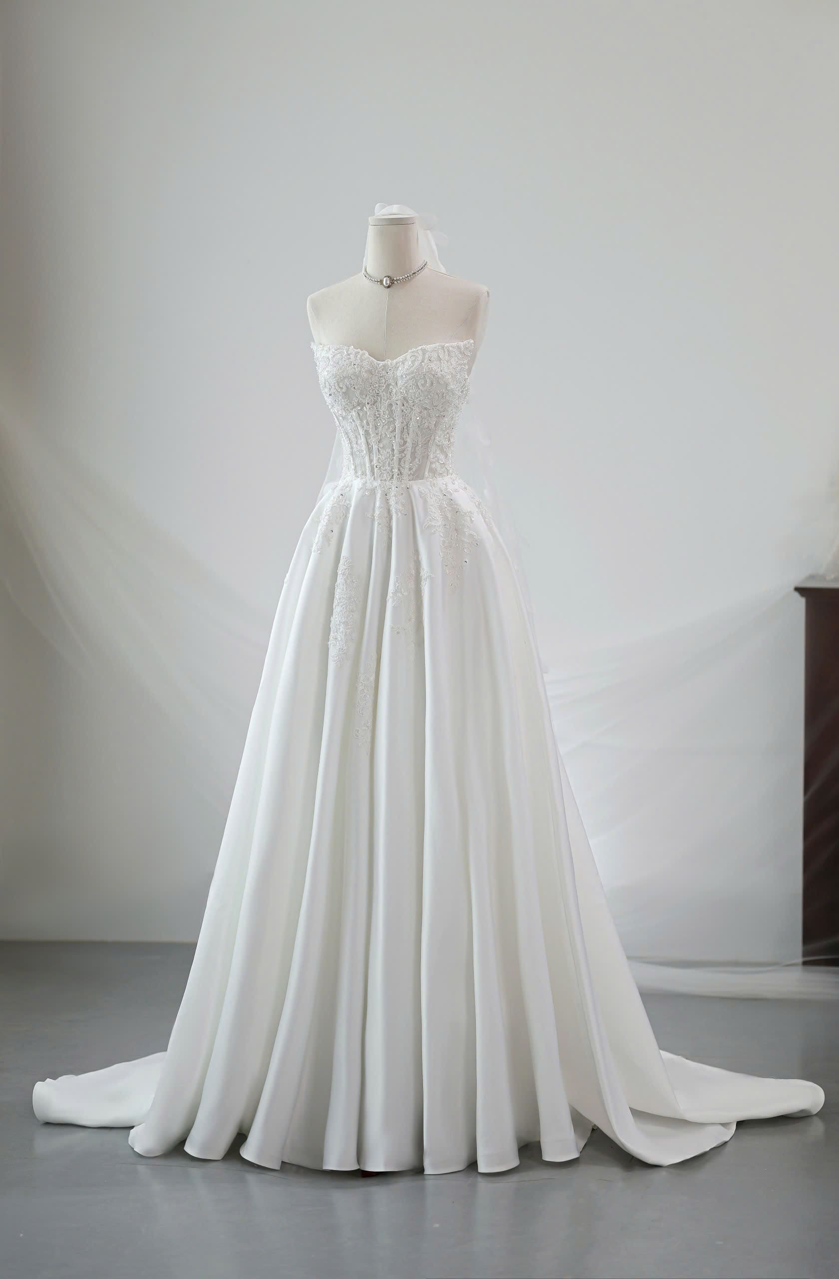 VÁY CƯỚI DÁNG SUÔNG KẾT REN KIỂU CÚP NGỰC