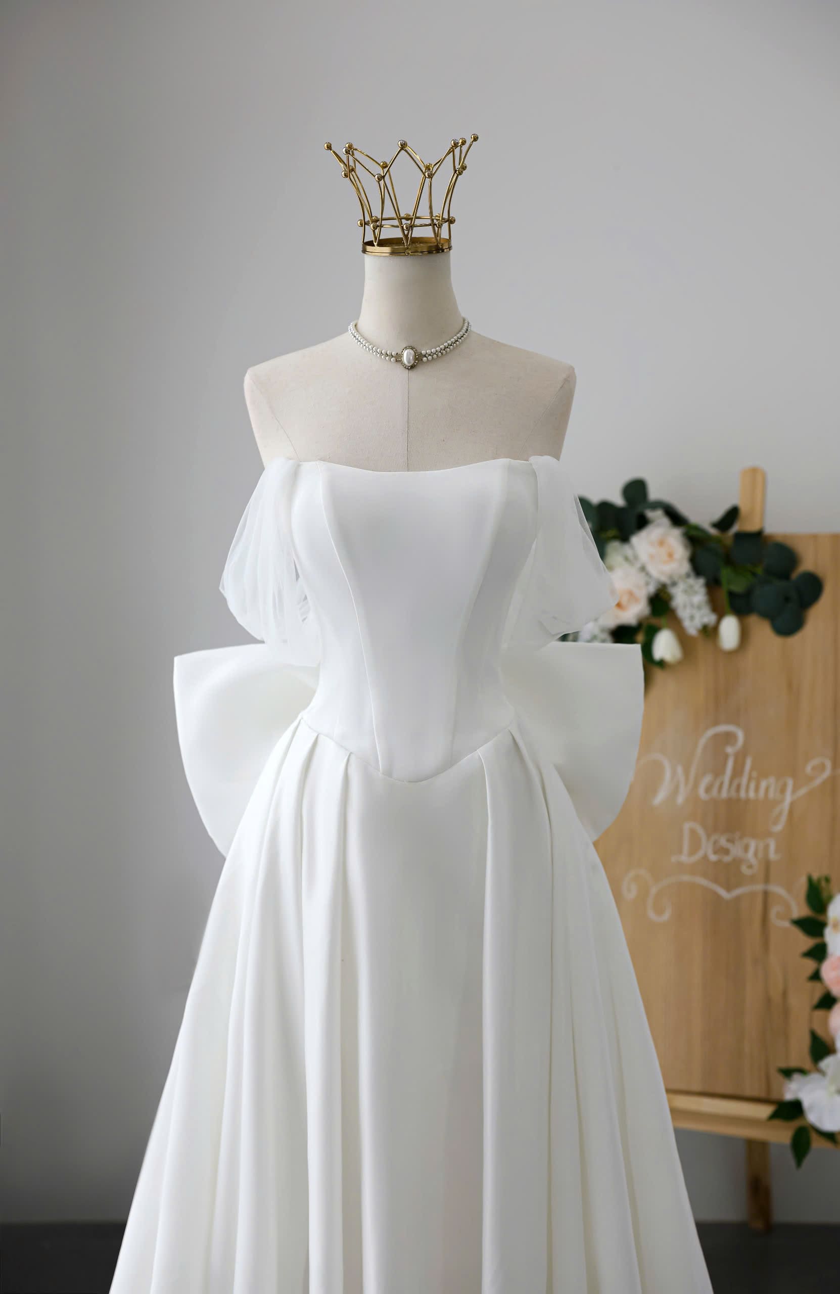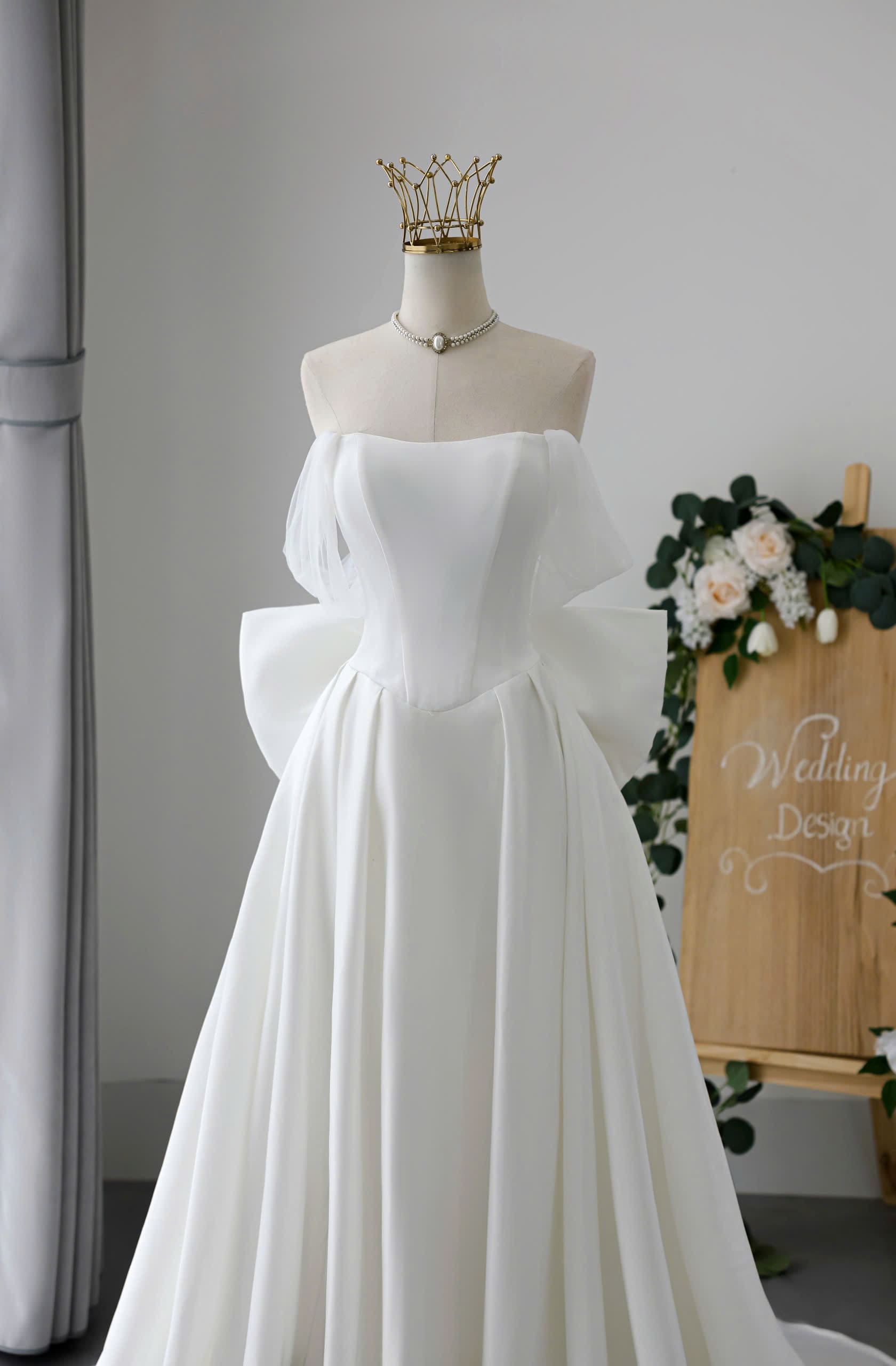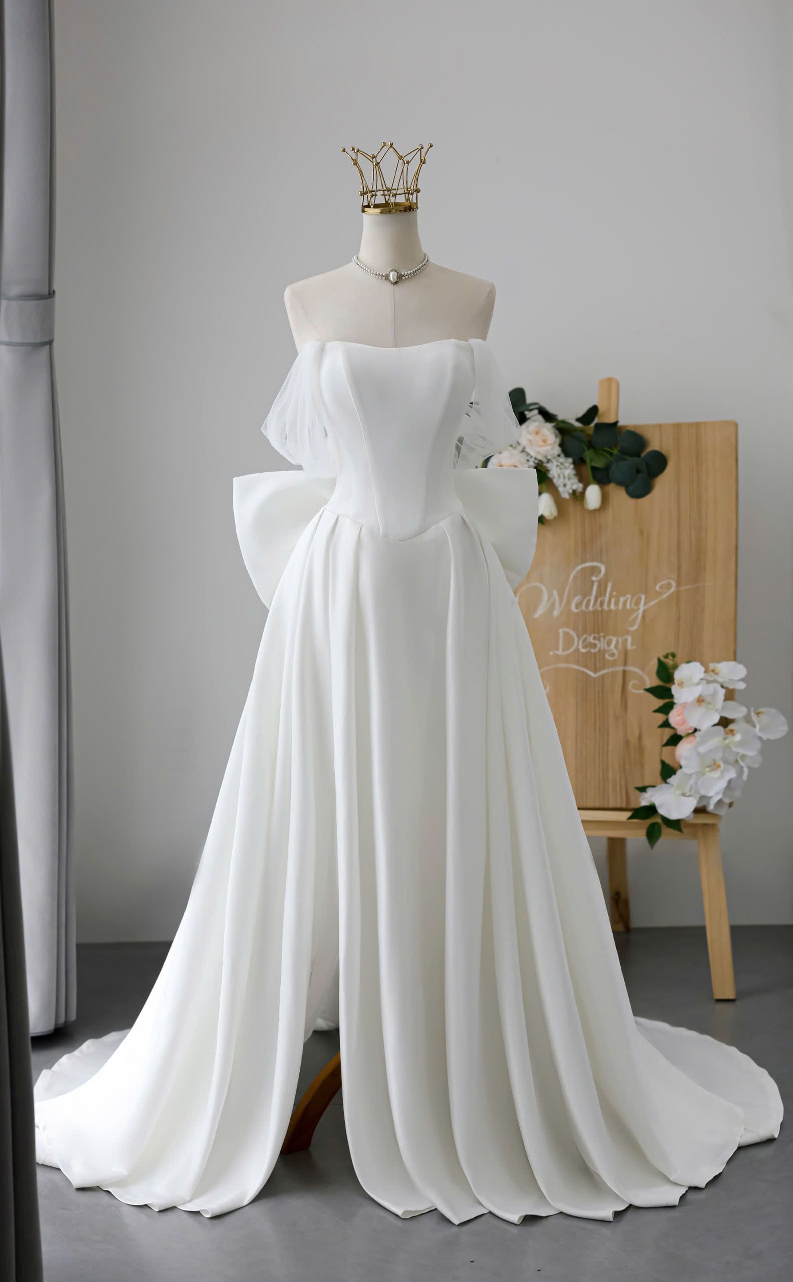 VÁY CƯỚI SUÔNG KIỂU TRỄ VAI VOAN ĐƠN GIẢN NHẸ NHÀNG