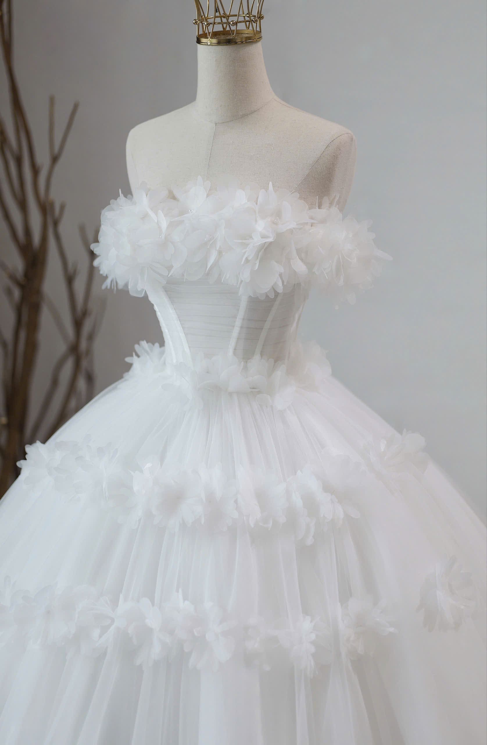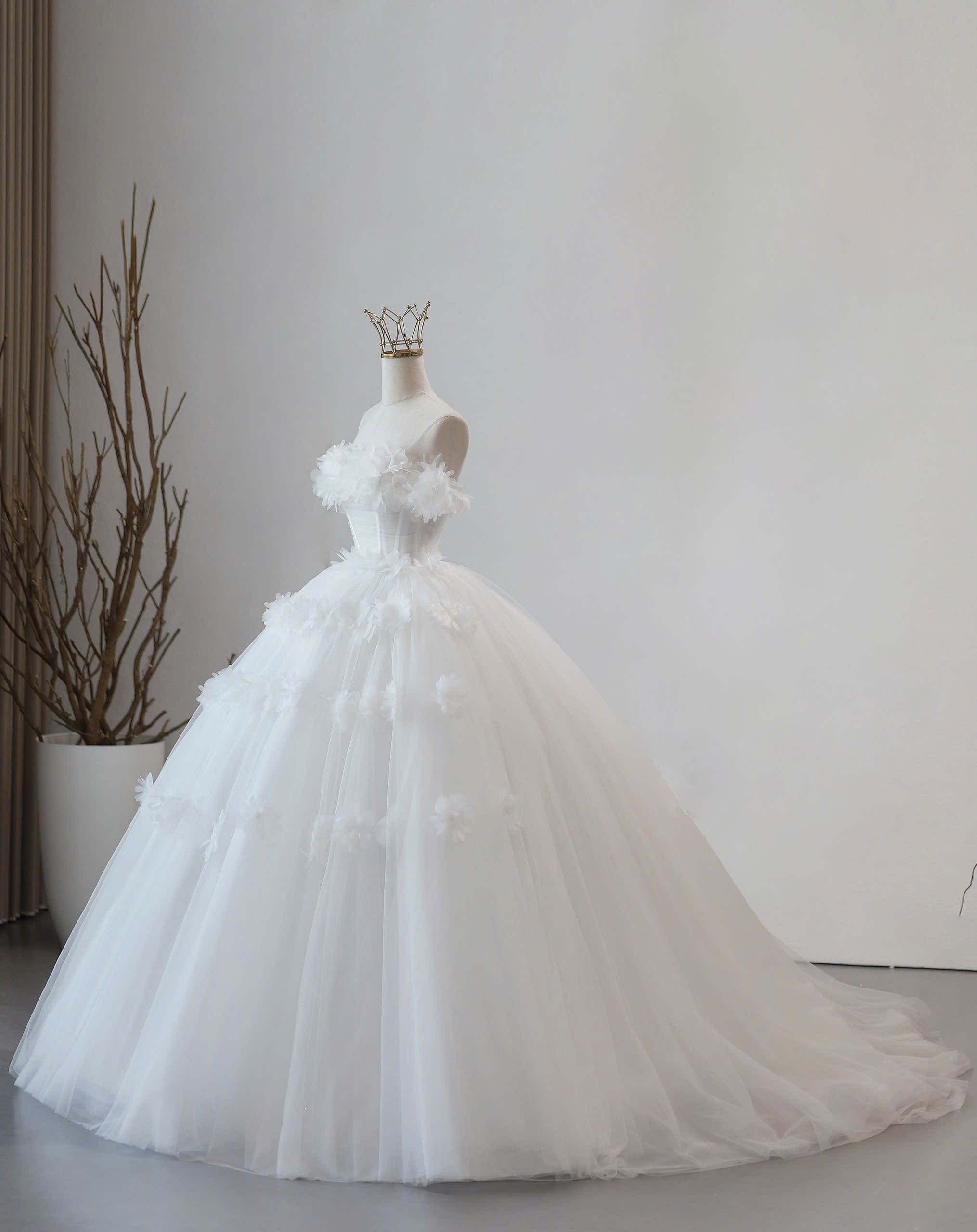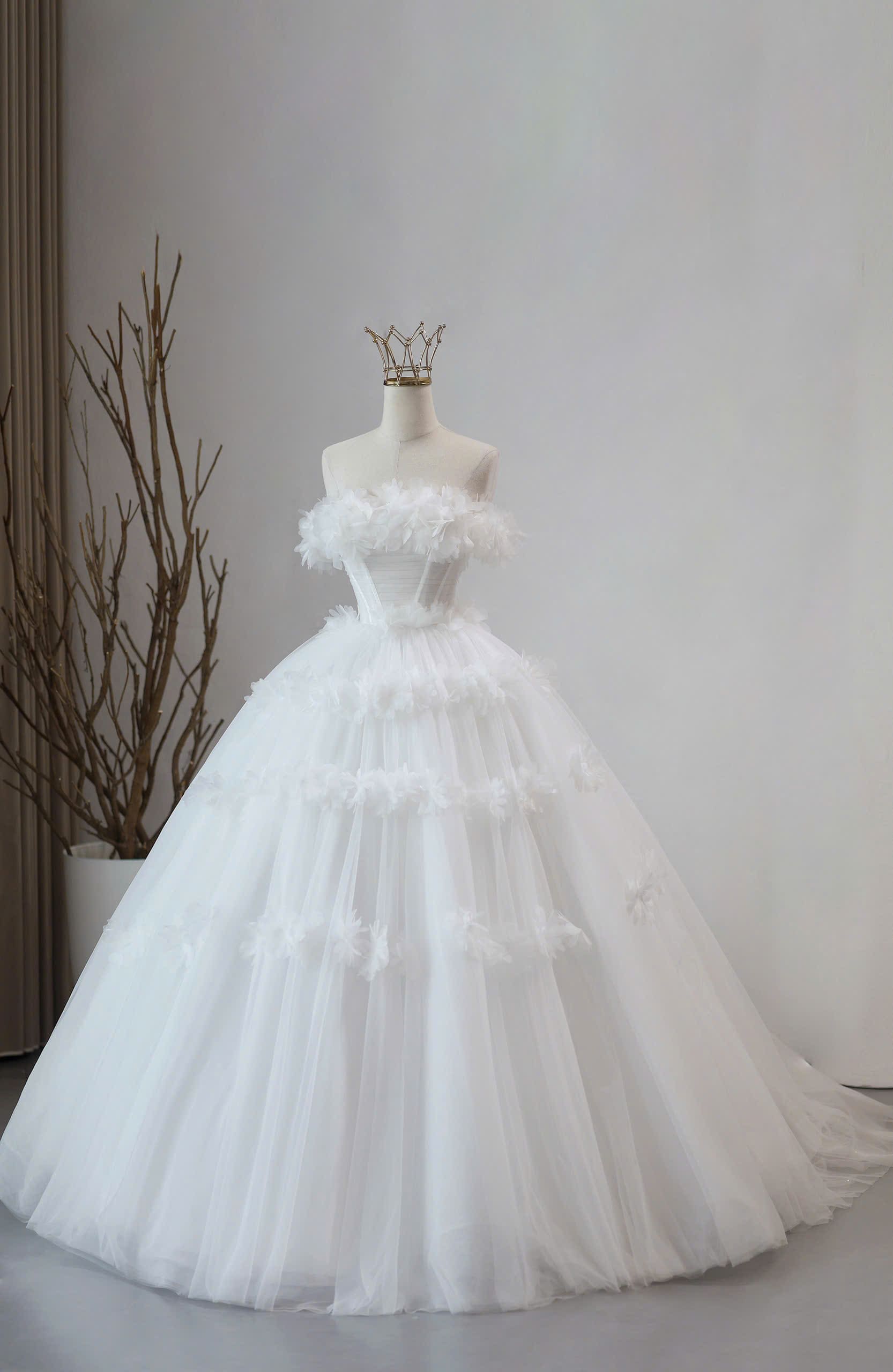 VÁY CƯỚI TÙNG XÒE CÚP NGỰC KẾT HOA VOAN XINH XẮN