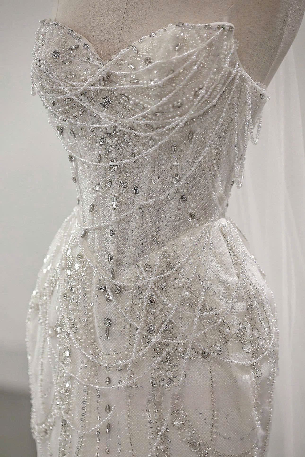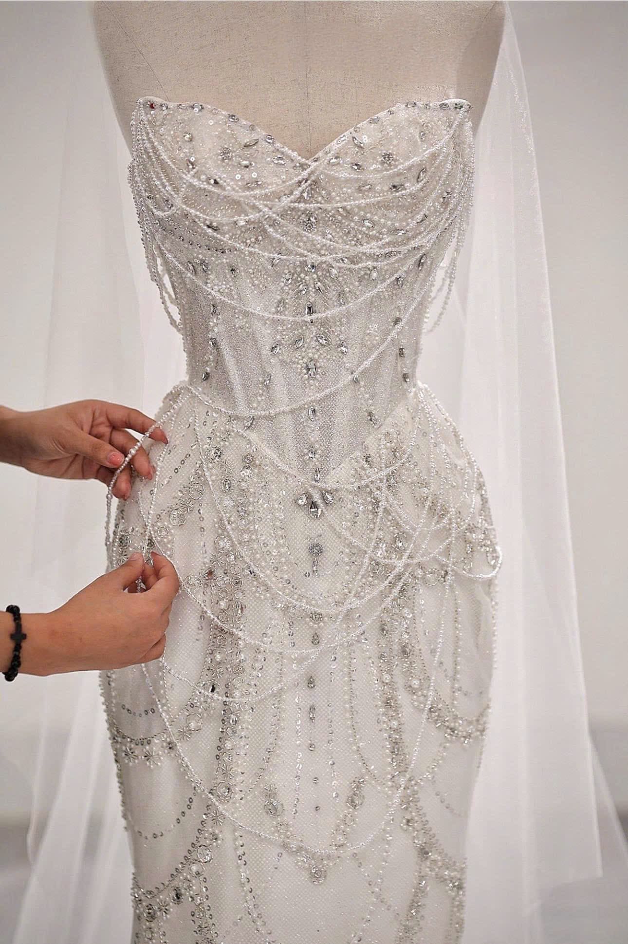 VÁY CƯỚI ĐUÔI CÁ KÈM CHOÀNG KẾT SAPPHIRE SANG TRỌNG