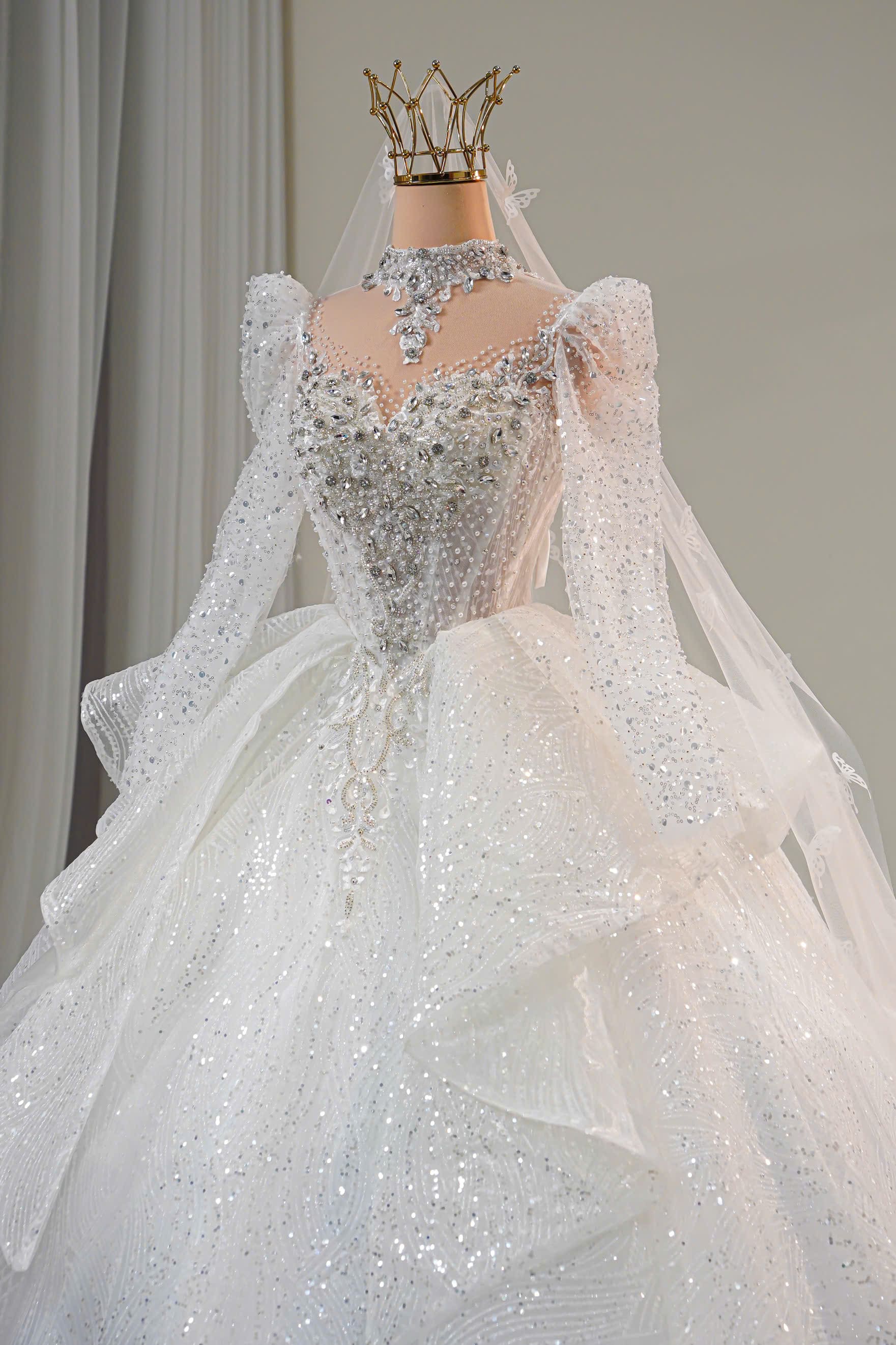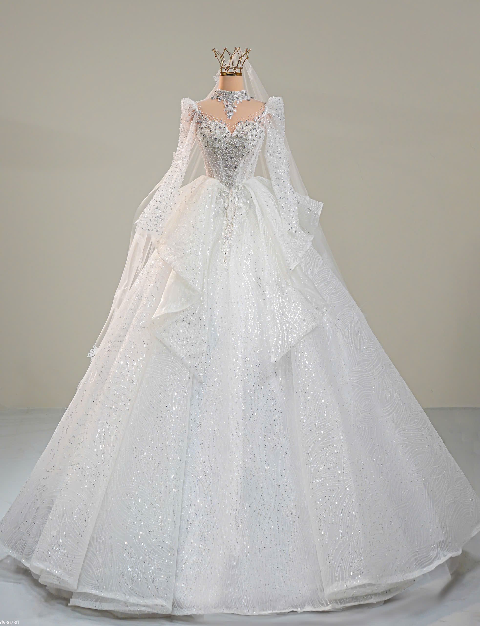 VÁY CƯỚI LÀM LỄ TAY DÀI KÈM VÒNG CHOKER