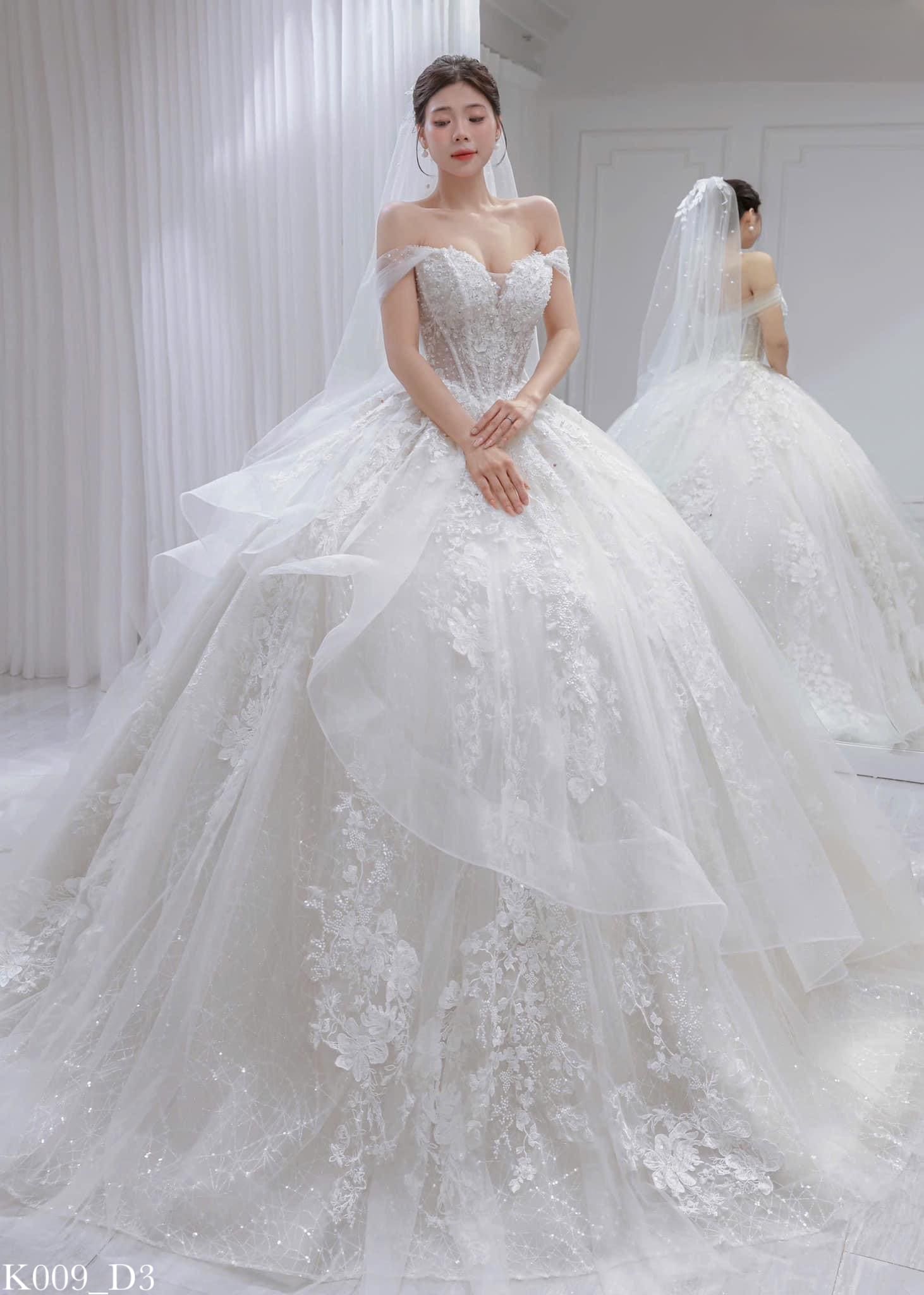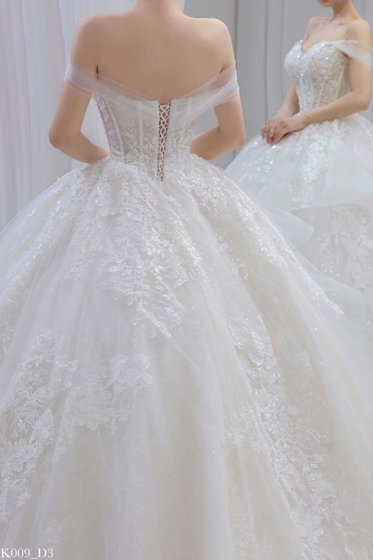 VÁY CƯỚI LÀM LỄ TRỄ VAI LỘNG LẪY